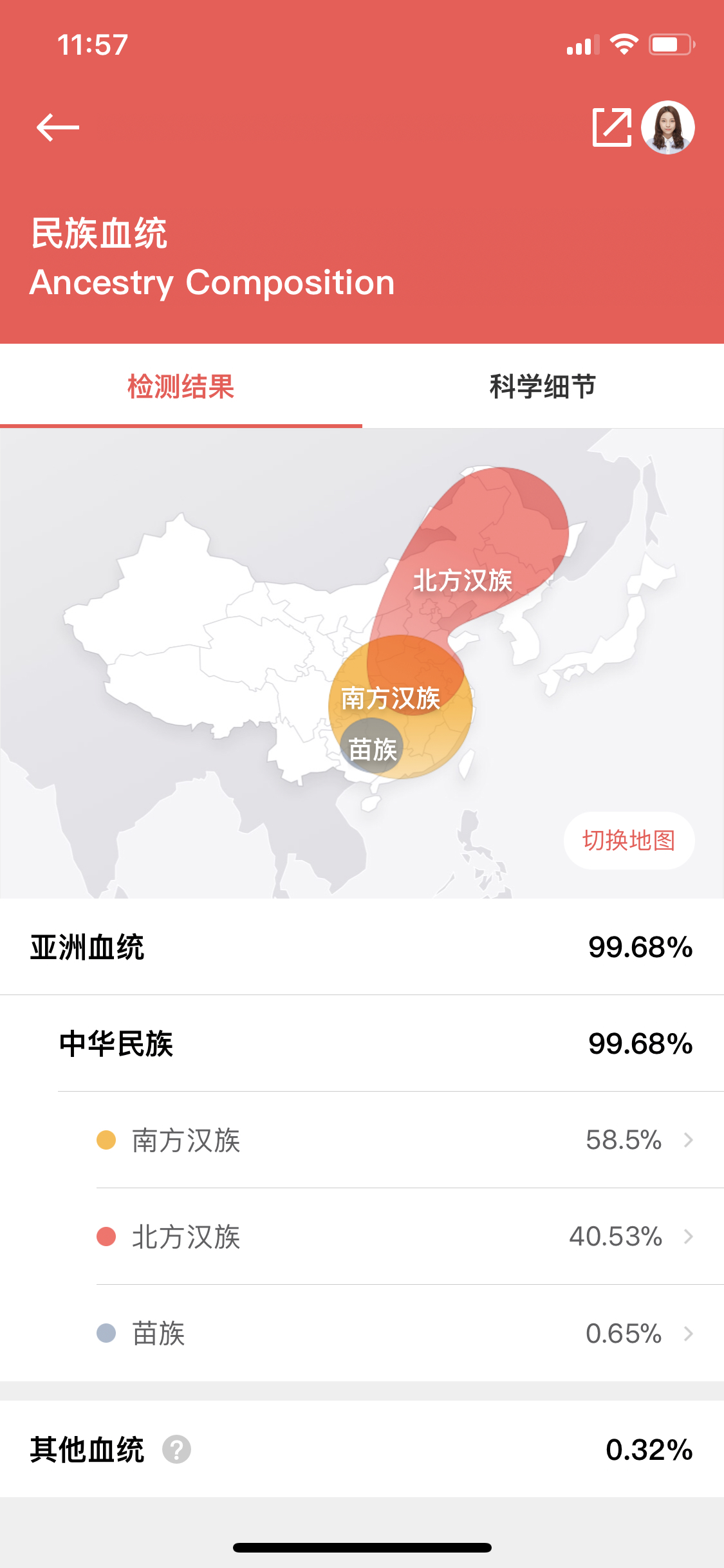- 还有一个通古斯族群。我是满族,成分有 北方汉,通古斯,韩国和布里亚特。更新之前还有蒙古和南方汉族。 我表弟和我不一样的地方在于 日本和雅库特。更新之后我俩都没有南方汉族了。