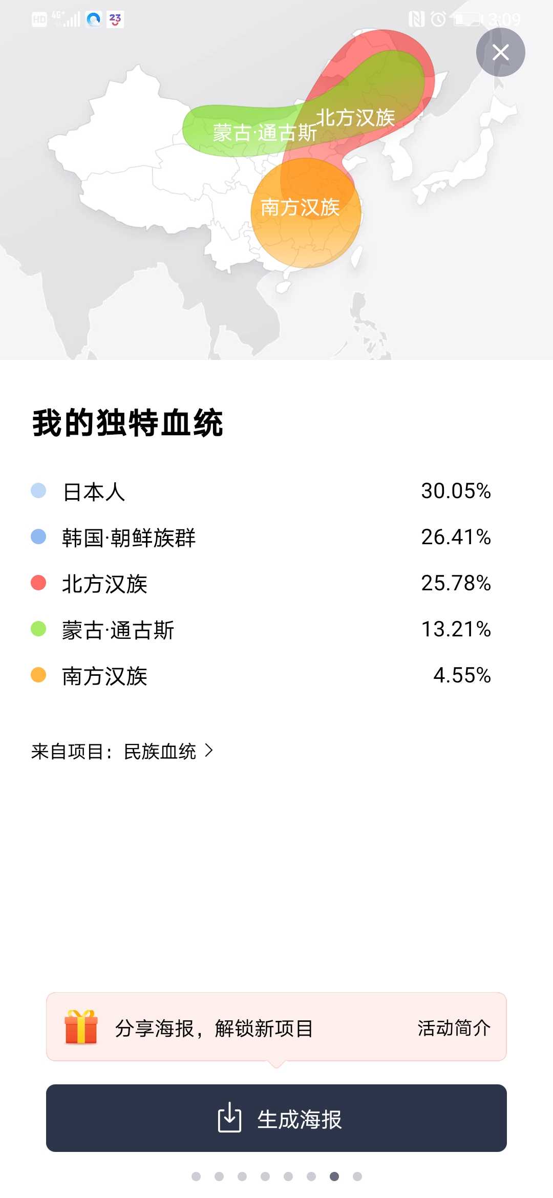 日本血统比例最多,但还是东亚大陆血统最多,只是被分成朝鲜、北汉、蒙古了,一挑三。