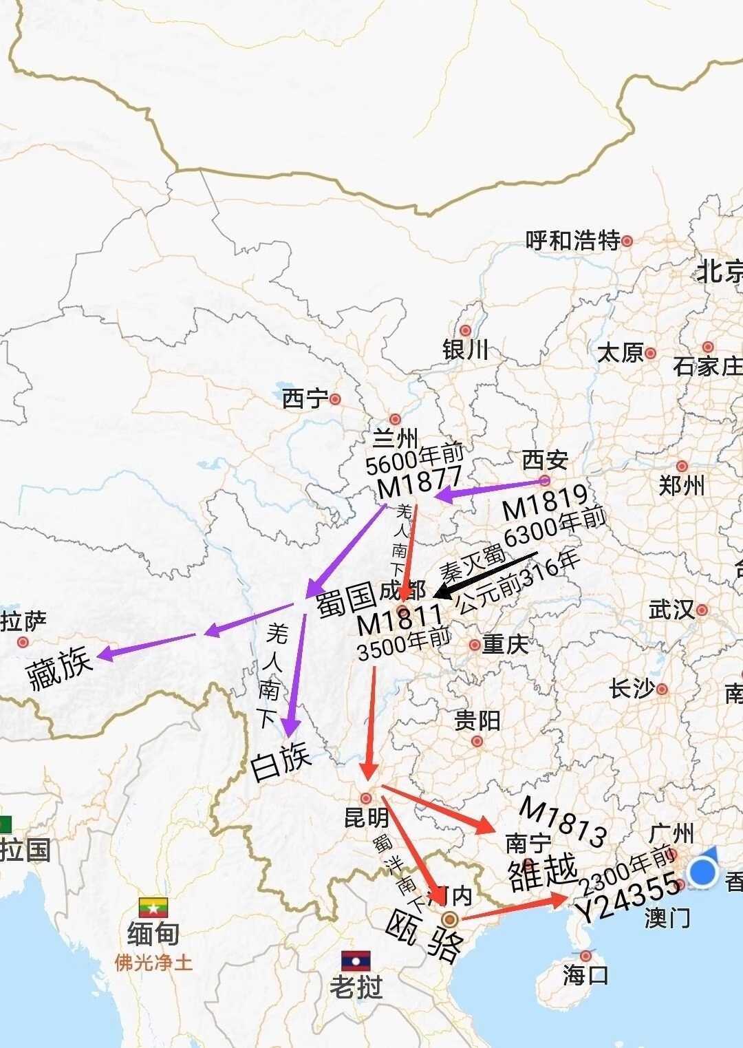 公元前316年司马措灭蜀,公子蜀泮率3万蜀人南下岭南,形成M1813、Y24355岭南分支。