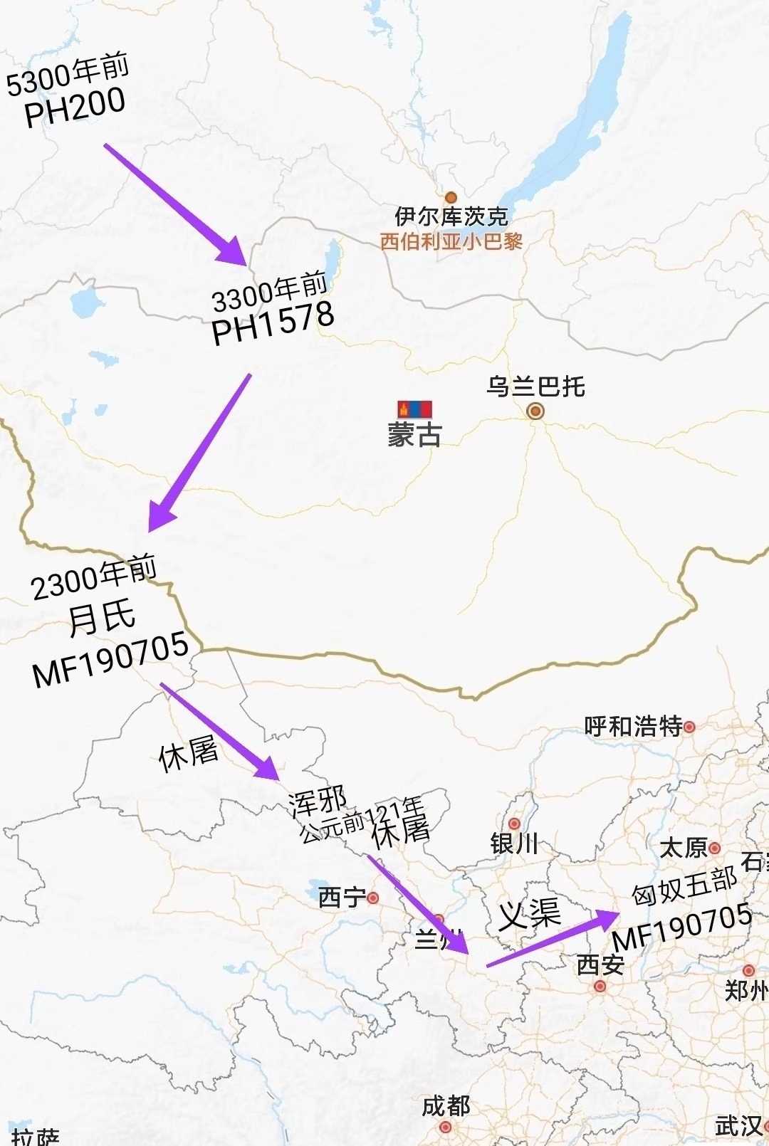 R1b-PH200、PH1578是叶尼塞流域、额金河流域土著,公元前800-300年,冶铁技术传入阿尔泰地区,匈奴诸部落崛起,打击和驱逐R1b-PH200、PH1578南下巴里坤草原,形成休屠部。