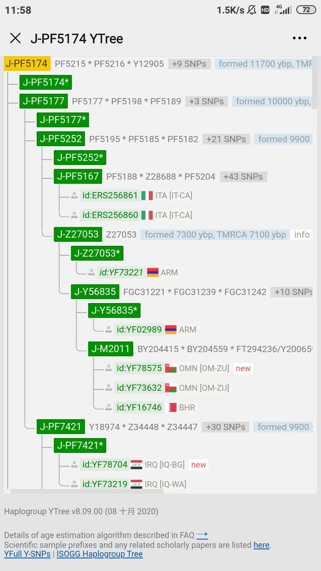 1万年前PF5174人群在亚美尼亚高地生活,5200年前其下游Z6082爆发,4600年前Z6091再次爆发。