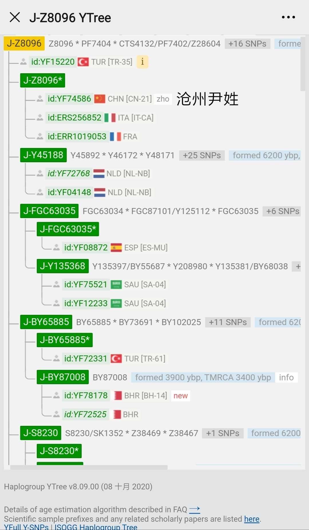 沧州尹姓已上树,属于J2a-M92下游Z8096,来自卡潘、纳希切万的亚美尼亚人。