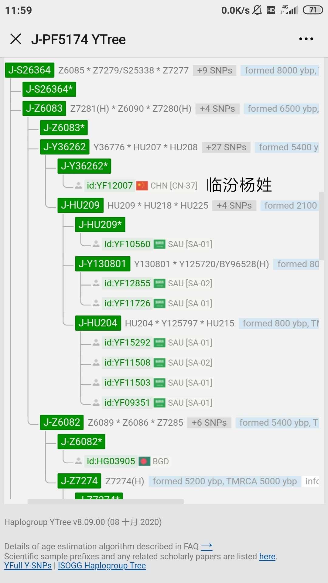 临汾杨姓属于J2a-PF5174下游Y26262分支,跟七个沙特人2100年共祖。推测其祖先为公元1260年从伊利汗国来中国的亚美尼亚军团、阿塞拜疆军团。