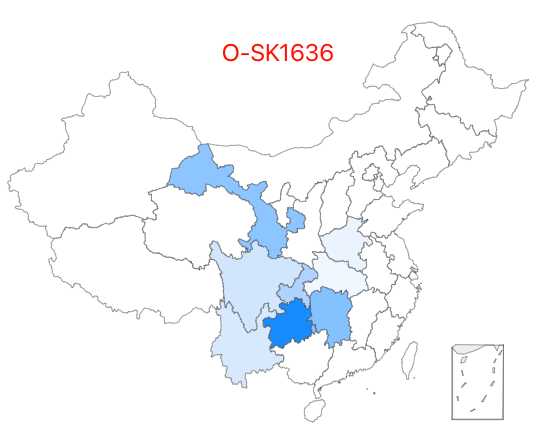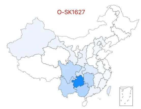 O-SK1627 类型,占到了苗族群体人口的 2.43%。该类型的最近共祖时间约在 3730 年前,人口占到中国男性总人口的 0.18%,主要分布于贵桂湘川渝云等中西南省市。该类型可以占到贵州当地人口的 1.57%、广西 0.52%、湖南 0.44%、四川 0.41%、云南 0.41%、重庆 0.25%。在黔东南、黔南、防城港、普洱、河池等地区该类型可以占到当地人口的 2.1%~2.8%。