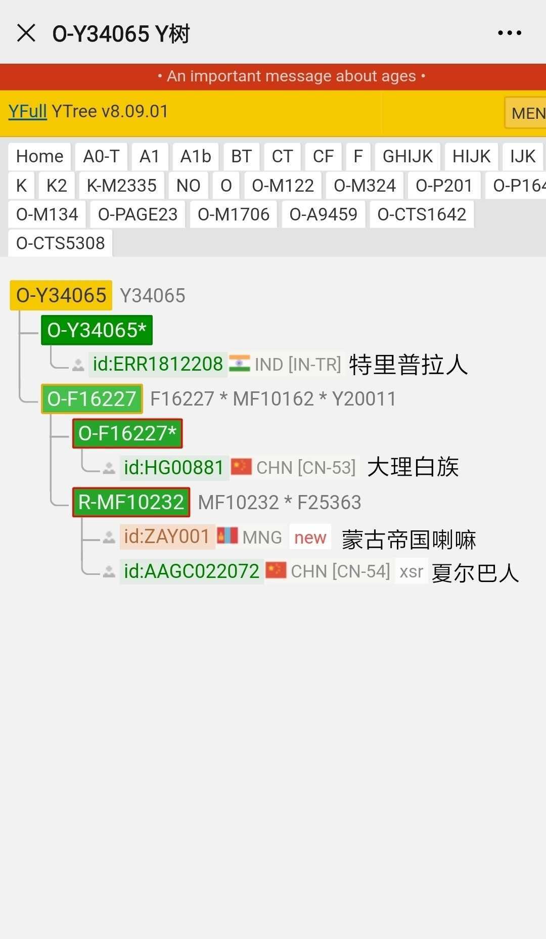 O2a-CTS5308是古羌部落,Y34065是4000-2900年前迁徙大理、雅垄、象雄(羊同)、疏勒的一支古羌部落,分布在大理白族、特里普拉、山南藏族、夏尔巴、尼泊尔、拉达克、喀什-和田维吾尔(疏勒羌人、于阗羌人后裔)。