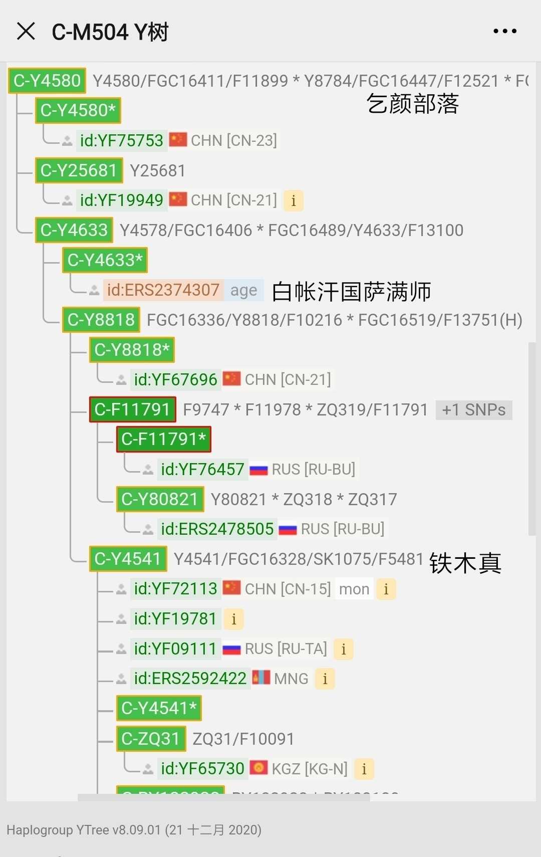 C2b-M504是室韦蒙古,Y4580是乞颜部落,Y4541是成吉思汗,850年共祖。