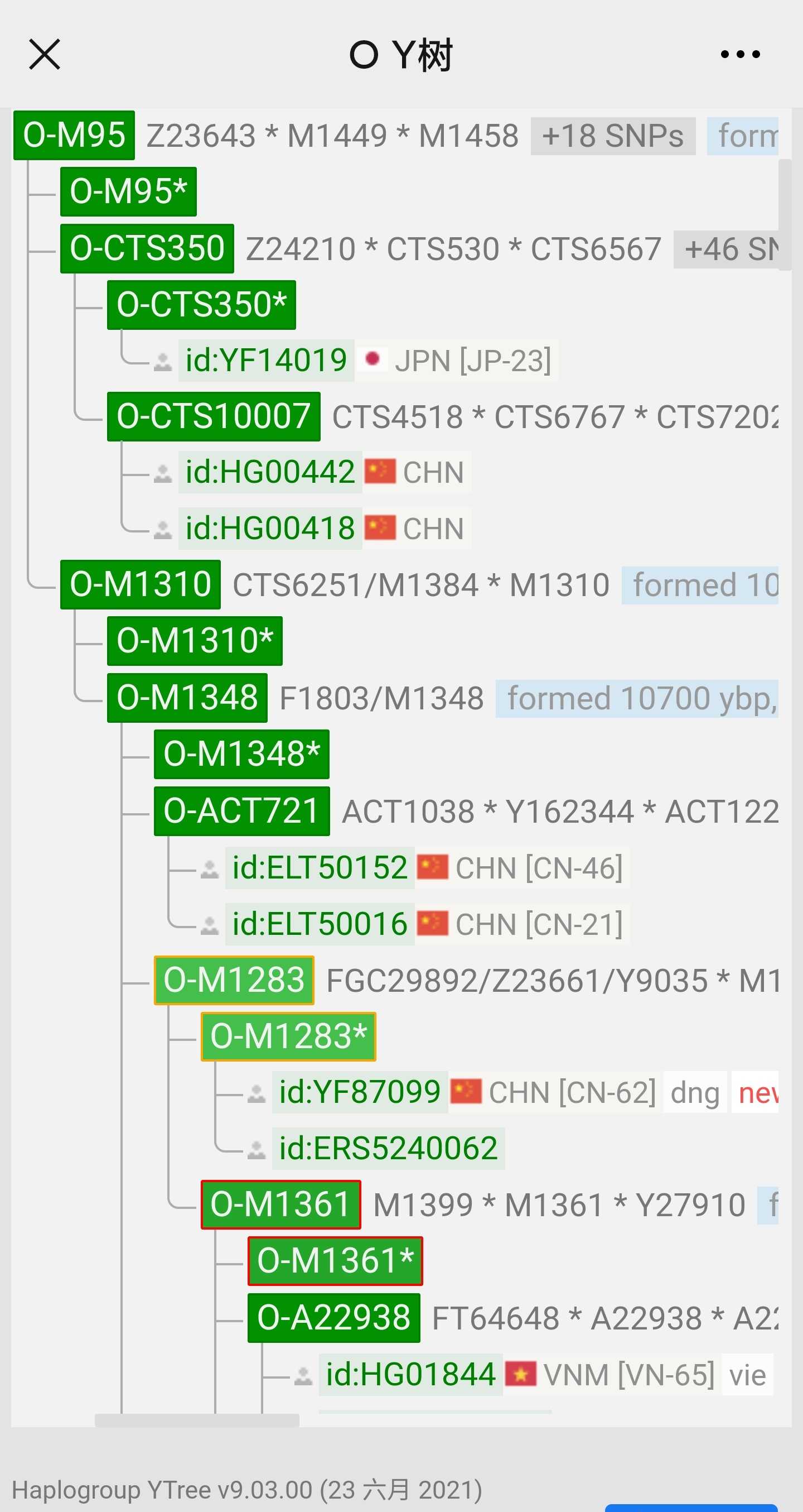 今晚我仔细研究了一下魔方和yfull的样本分布,发现M95下游有两支,可做M95起源于渤海-黄海的证据。