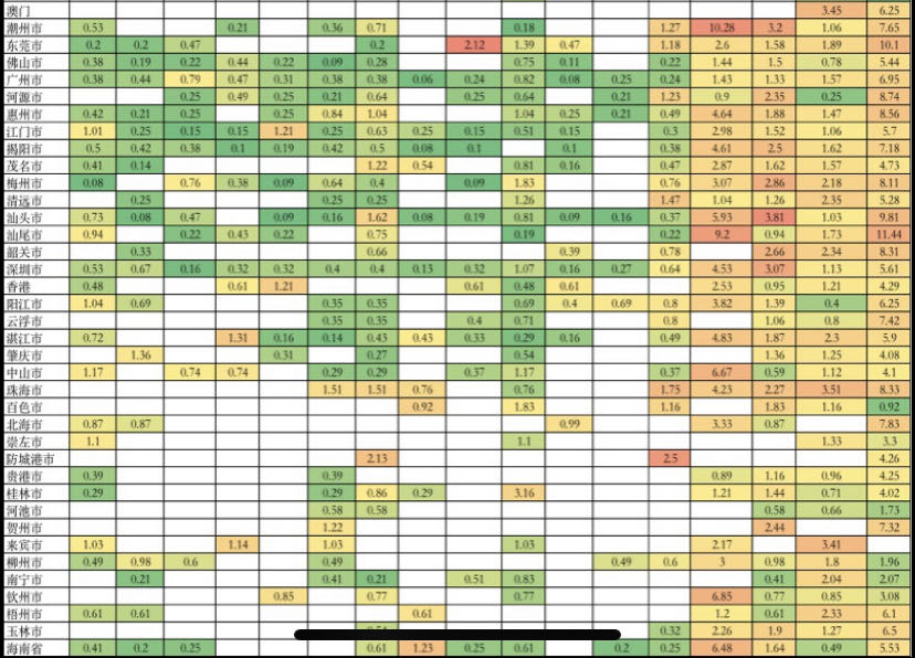 O-MF118686 3320年 佛山15 1.67% 广州 11 0.91%,