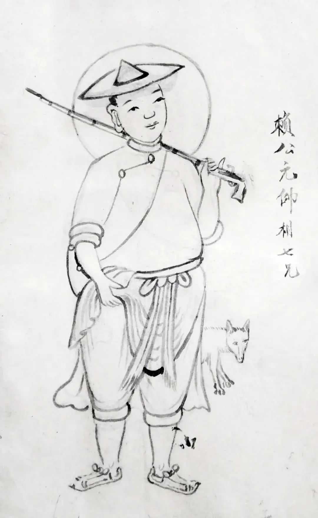 那么这个赖公元帅究竟是何来历?按清康熙十四年《会昌县志·方外志》沿袭前代地方志书的说法为“赖神,楚人,晋时事老子教,隐于荆山。后至祁山,得飞升变幻之术,遂征元宗。其发迹于湘江者,不知何代。相传昔时洪水漫漶,邑有金姓者,夜于江岸捕鱼,忽有香木浮水面而来,入网中。麾之急流不去,复入者数。渔者异之,取以归。梦神告以姓,及某地某时人,得道于某山。于是即梦所见,刻香木为神像。时知县梁潜为之建庙于邑之西浒,额曰‘赖公祠’。威灵赫濯,阖邑士庶靡不奔走祷祀于庭。弘治中寇乱,巡抚韩襄毅邦问发兵征剿,贼从阵中见一大白旗,上书‘赖’字,遂却走,官兵追斩俘获无算,说者谓神助焉(旧志)”。