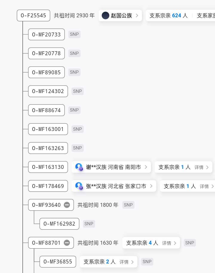 为什么推测是赵是因为这支扩散比较局限,不像鸡粥的上百个诸侯国的扩散广度,主要在山西、河北等北方地区高频,南方稀少,比较像地域性诸侯的扩张,他的兄弟支在陕西高频,疑似秦国王族,秦赵共祖于F3256,疑似秦赵商时的共祖飞廉,这些吻合推测F25545是赵国王族。