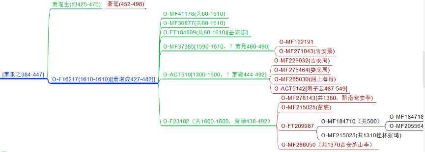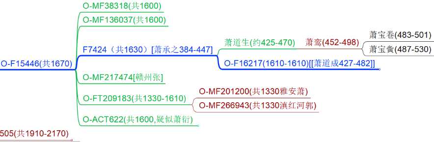 →O-F15446(共祖1610-1670。此处才是真正的齐梁萧氏!后面有主干支O-F16217,O-ACT622;大支O-FT209183;四个小支;37个散支!!!