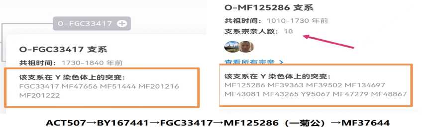 ③ ACT507下游有一个巨族(O-MF125286,共祖约1010年),疑似一菊公后人;