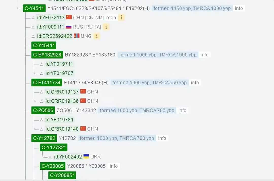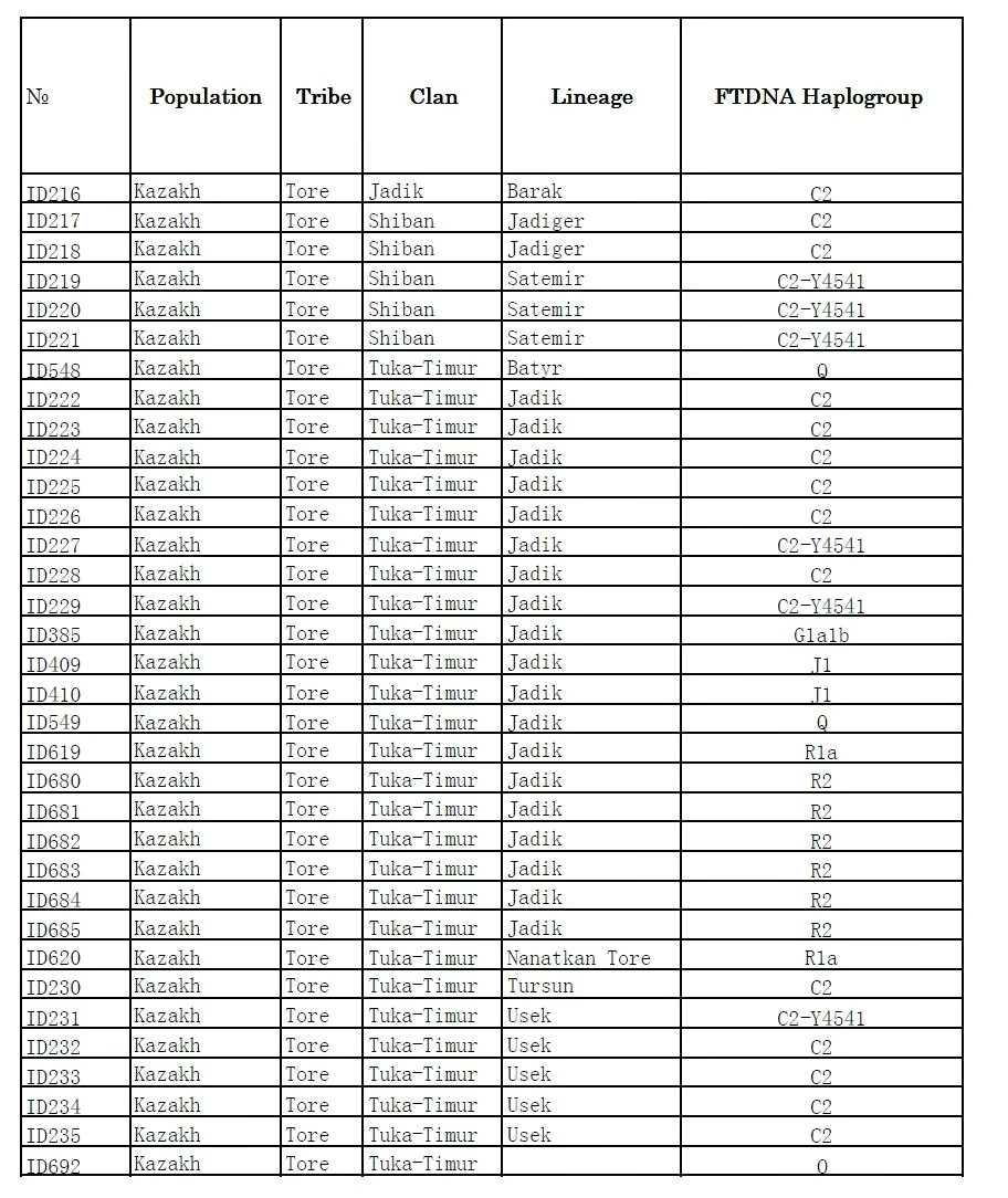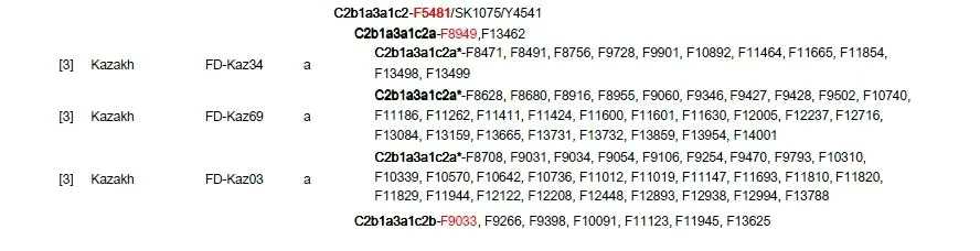 有三个中国的哈萨克个体也属于C2-Y4541下游的C-Y4541-F8949-FT411734,而Tore部落在中国分布很少,少量分布恰恰就在伊犁地区,很可能这三个个体也是托热部落,但不知道具体氏族了。