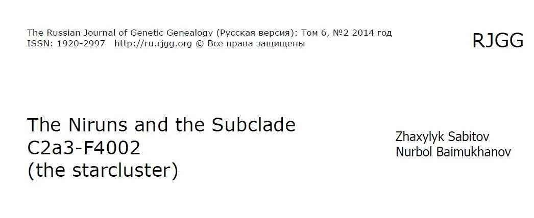 2014年的《Russian Journal of Genetics》杂志,有关于《The Niruns and the Subclade С2а3-F4002 (the starcluster)》的文章,该论文通过数据分析,发现托热部落中的Tuka Timur氏族和Shiban氏族,两者属于同一Y染色体类型C2-F4002(这个类型是Y4541的上游),而根据历史记载,这两个氏族的共同祖先是朮赤(Jochi)。
