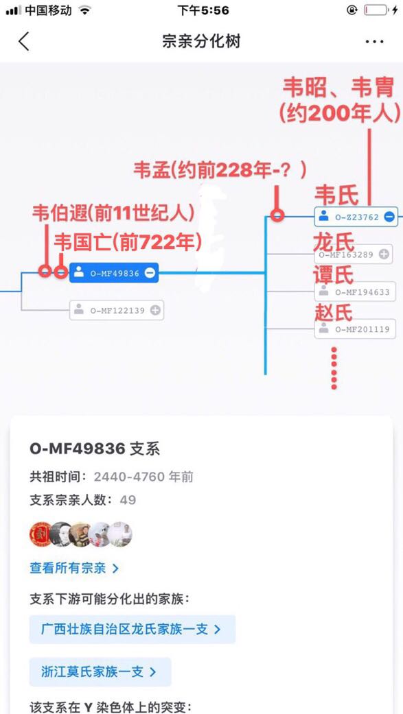 看了下树韦氏家族共祖在1840年前,并不能追溯到韦国啊。龙氏倒是共祖找到了2000多年,也是有人组织测的吧,好多高通样本啊。