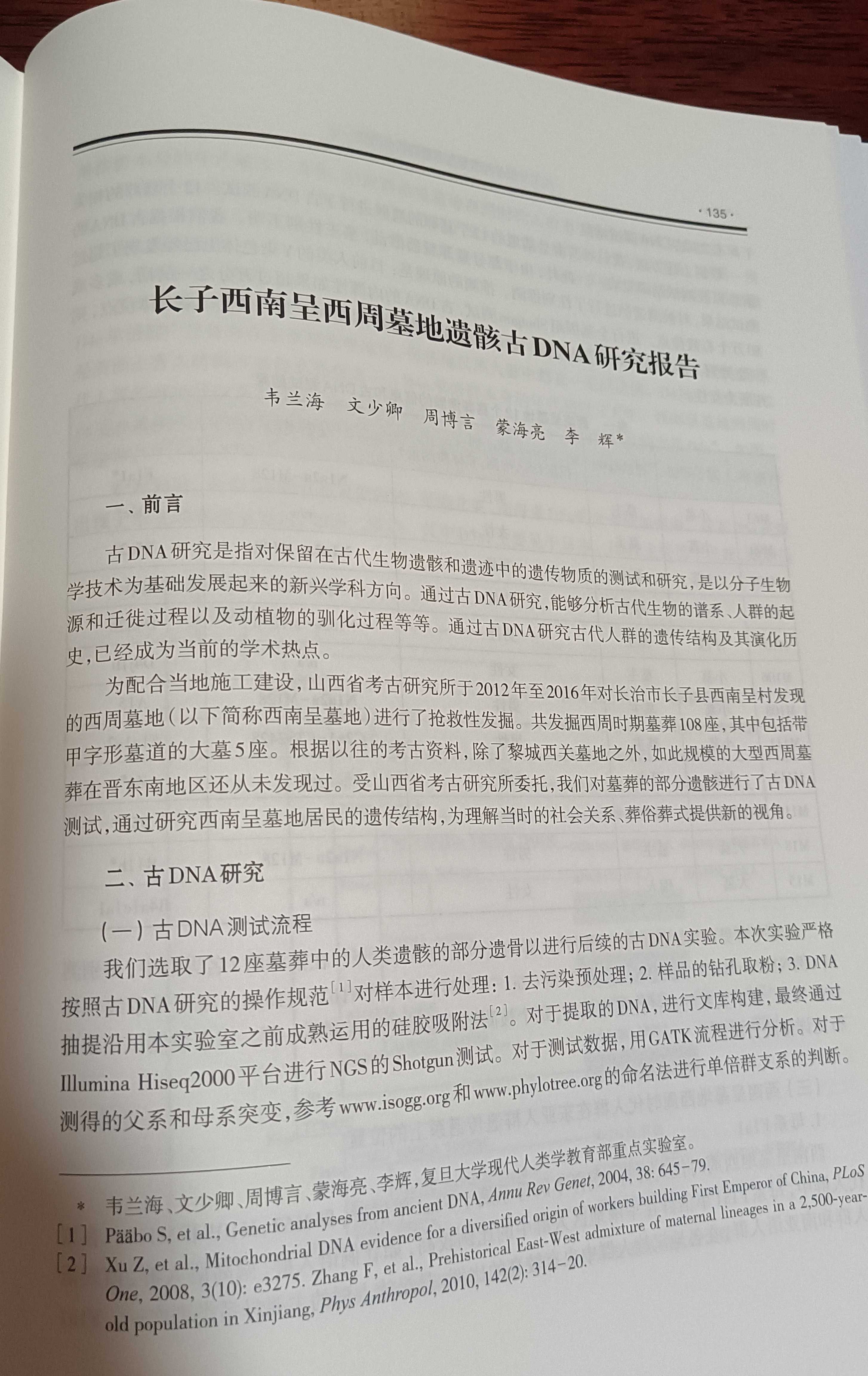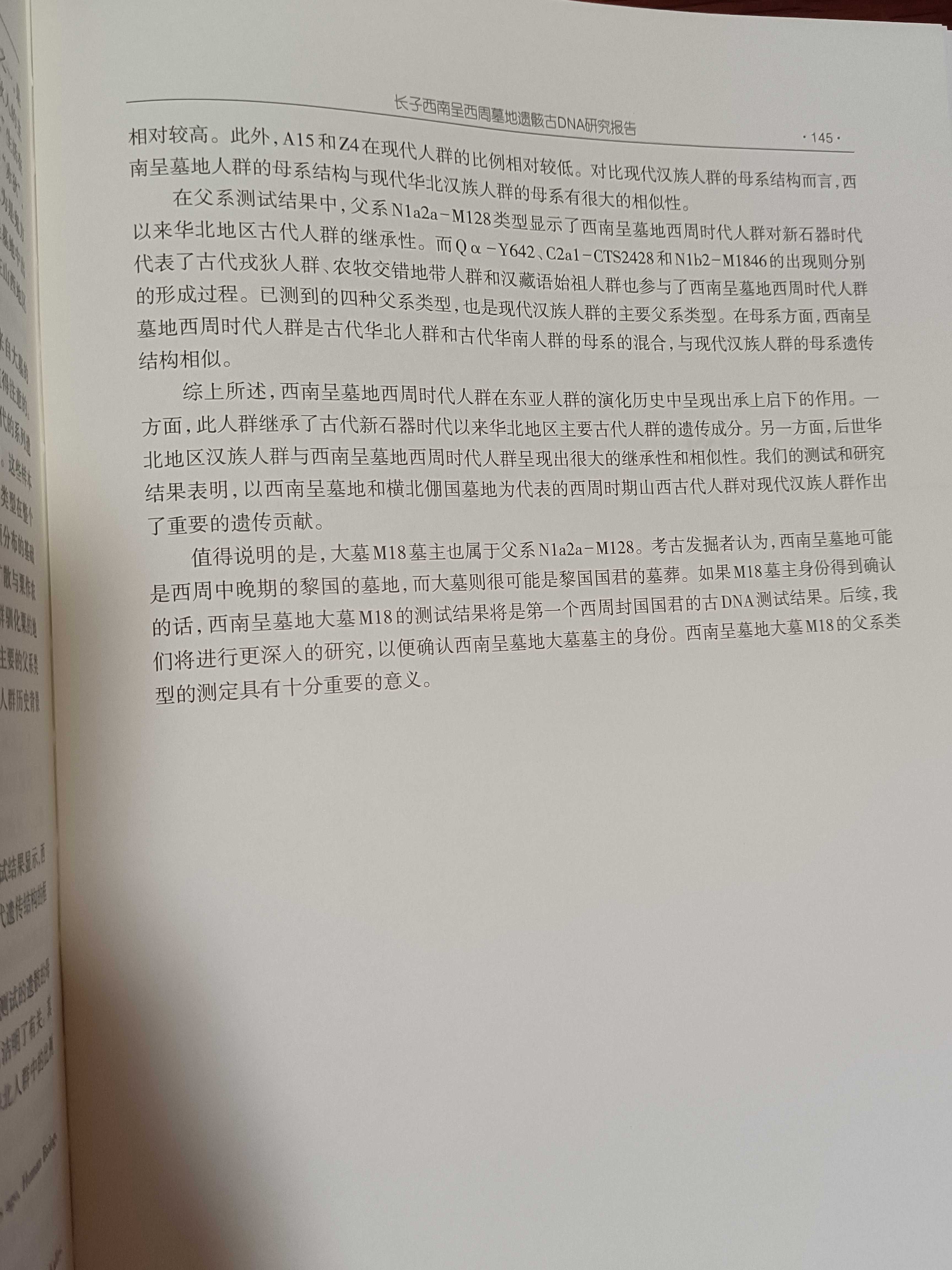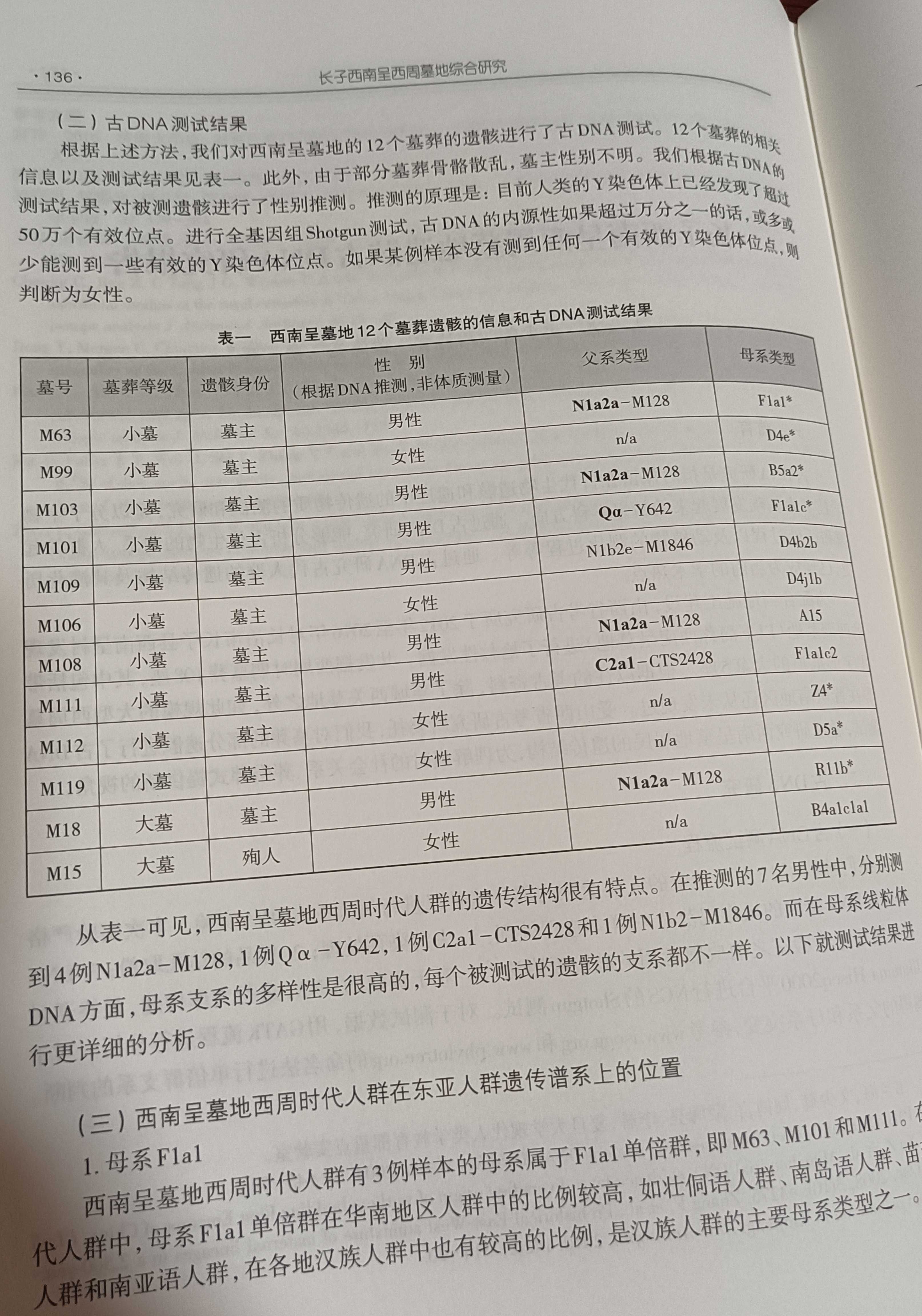此书中包含由上海复旦大学韦兰海、文少卿、周博言、蒙海亮、李辉撰写的《长子西南呈西周墓地遗骸古DNA研究报告》一文,文中正式公布西南呈国君级甲字形大墓——M18墓主人Y染类型为N1a2a—M128(请看图3表格)。