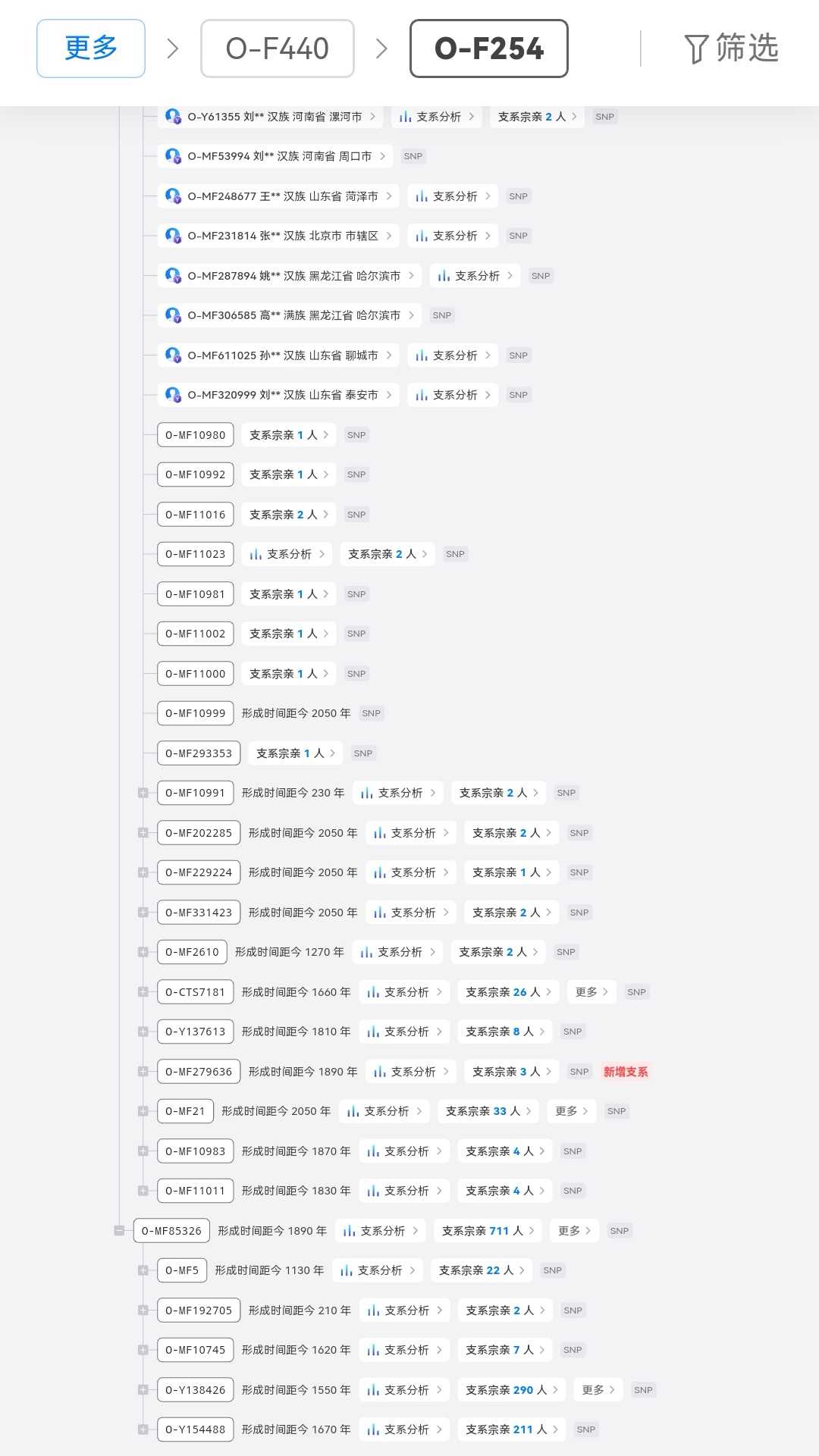 除此之外,O-F813的两个一级分支中,O-MF85326人最多,但为什么刘秀偏偏是O-Y20928?是因为O-Y20928第一次爆簇猛吗?