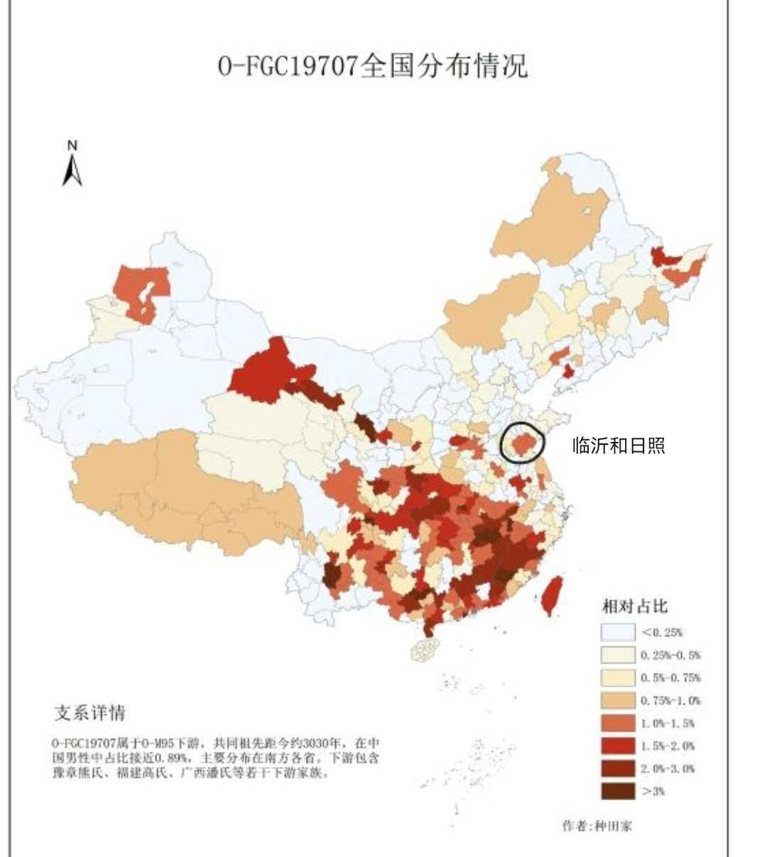 不要说那张楚王世系图是根据临沂日照分布倒推出来的,O-FGC19707各支系高通率很高,临沂支和日照郑氏高通的样本偏偏很少,说明O-FGC19707族人在推测楚王世系时根本没注意到这点。O-FGC19707在临沂日照的高频及时间节点、树枝位置与早期推测吻合得非常好,O-FGC19707与后期楚王的相关性也得到了一定程度的佐证。