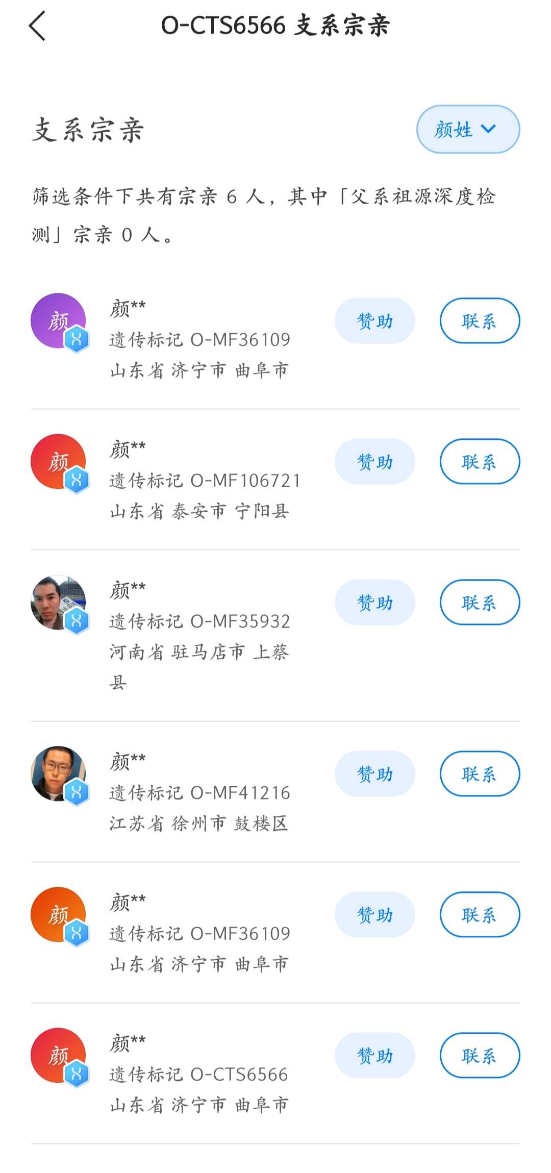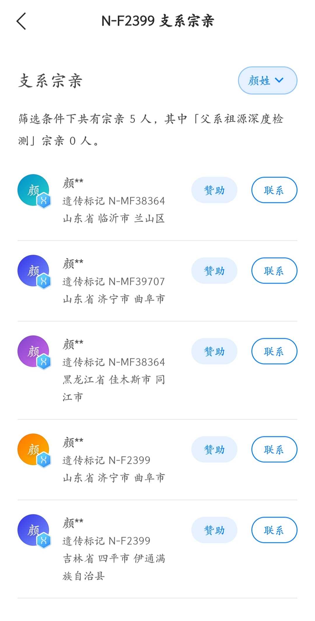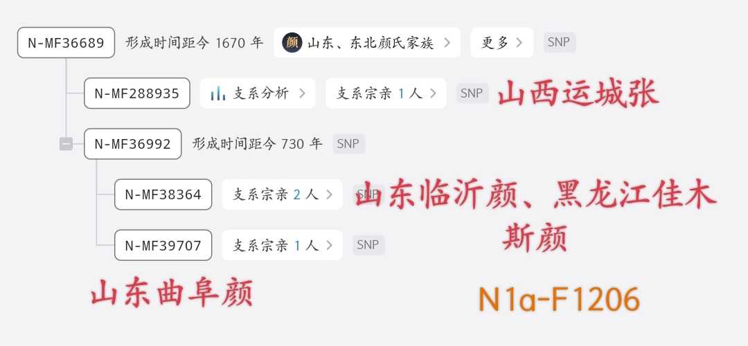 N1a-F1206-MF36689树上三个颜姓用户,其中包括一个临沂颜,和一个山东运城张氏。