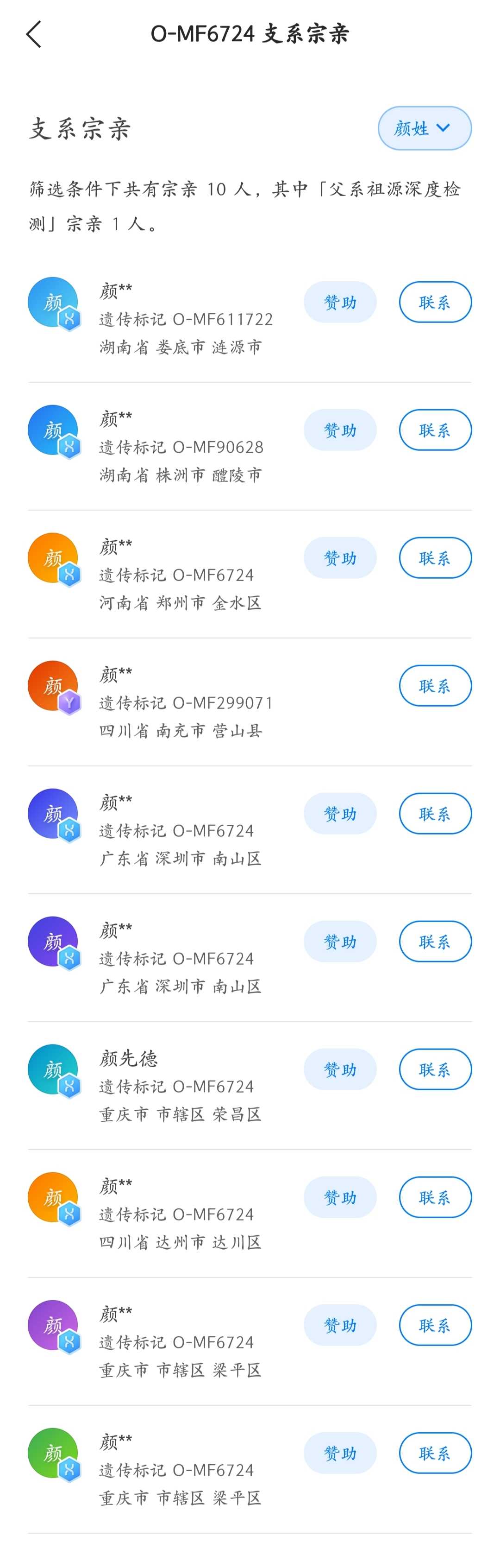 由此可见,最大的颜氏族,应该是Oγ1-MF91915.