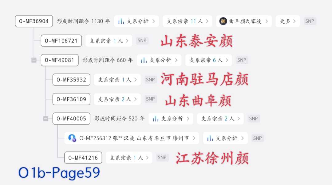 O1b-Page59-MF36904树上有5个颜姓用户和1个山东枣庄张的高通,但两个山东曲阜颜(注:在同一分支下同时期注册两个曲阜颜)疑似近宗。