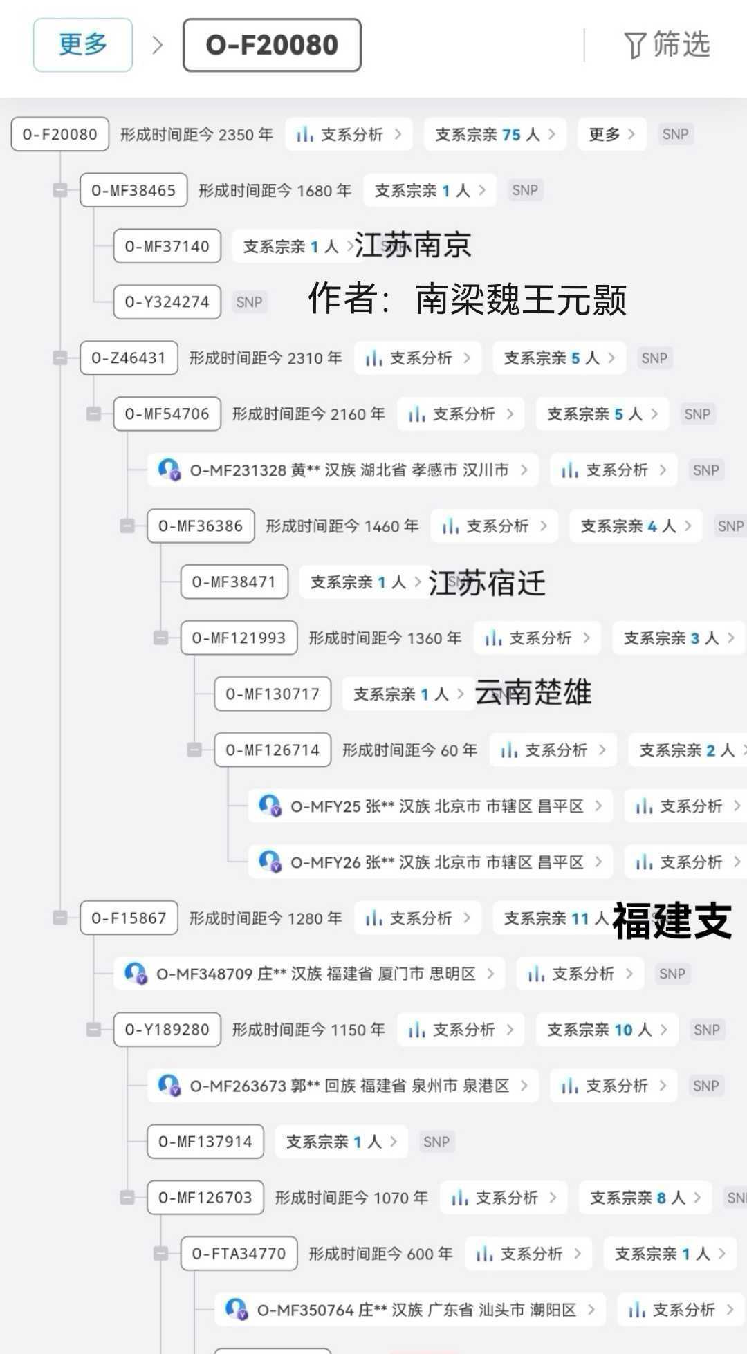所以秭归屈氏至关重要,十个秭归屈氏只要测出一个MF125321的上游,基本就实锤了。不过总体来讲,直接把某基因标记对应到具体一个历史人物确实不容易。