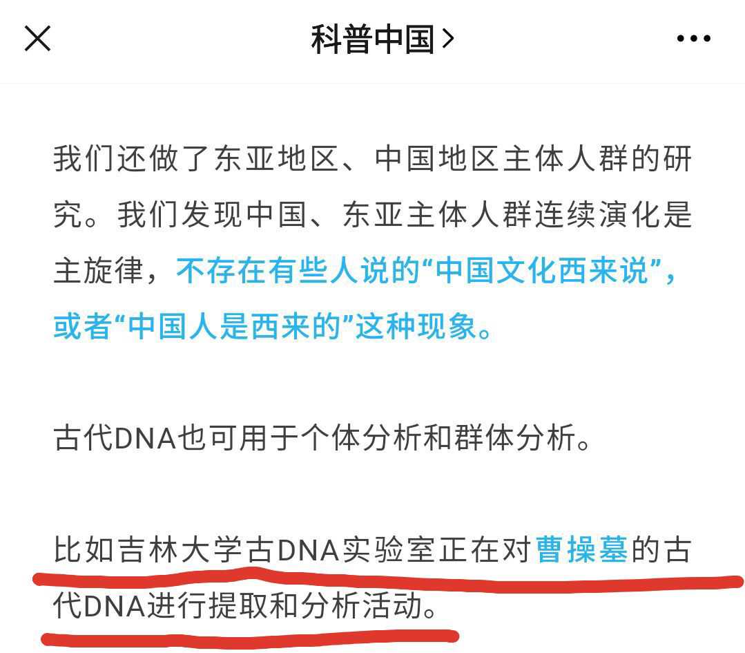这两天,周坤发抖音说,河南考古所测了曹操高陵的头骨,结果待论文公布。他在抖音里说,n1a4063的华东曹氏可能是曹魏,也可能是彭城曹氏。