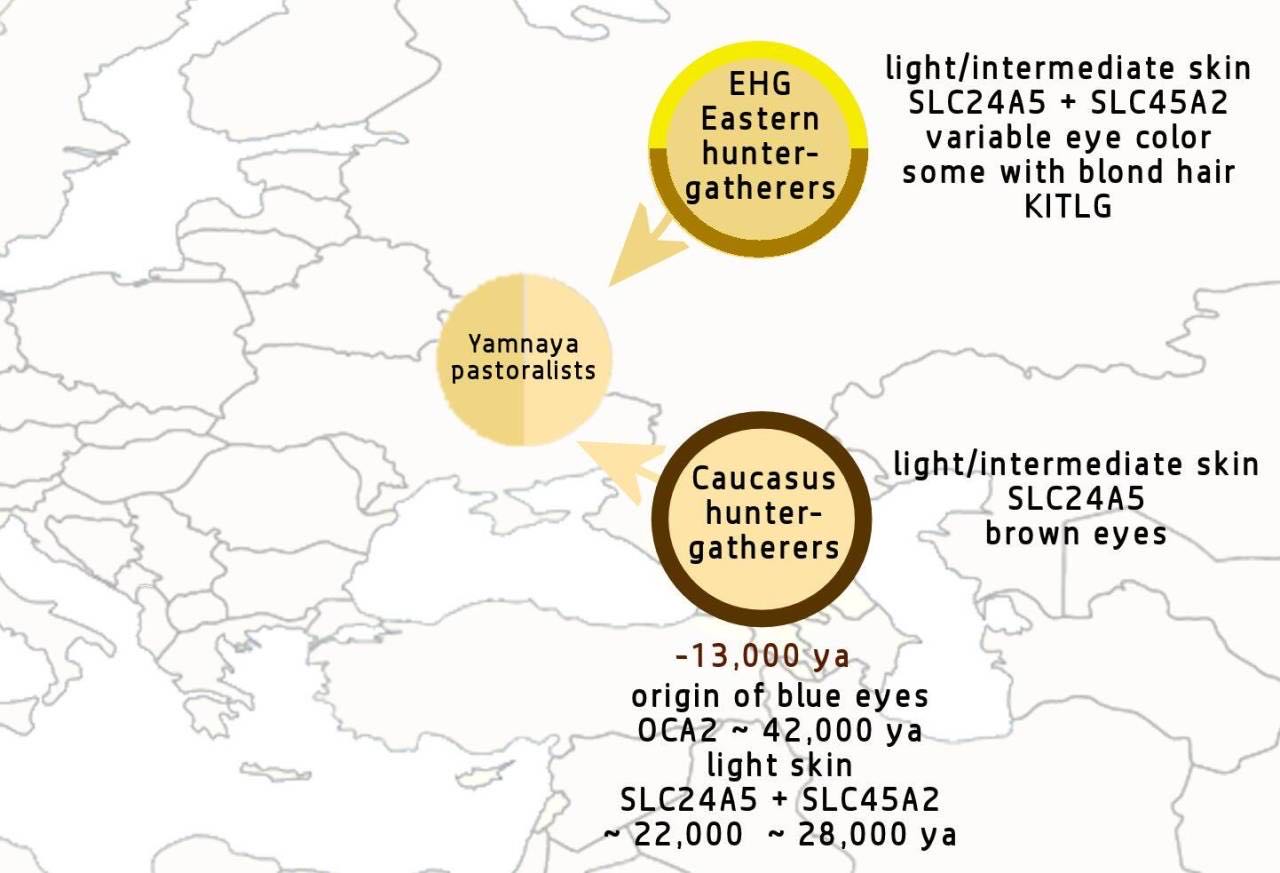 安纳托利亚语言在 WSH 出现之前就已分离。因此,说安纳托利亚语的人没有 WSH 血统,但有很强的 CHG 血统。 WSH 血统主要基于 CHG 和 EHG 血统。这种情况表明早期的原始印欧语系语言是CHG。