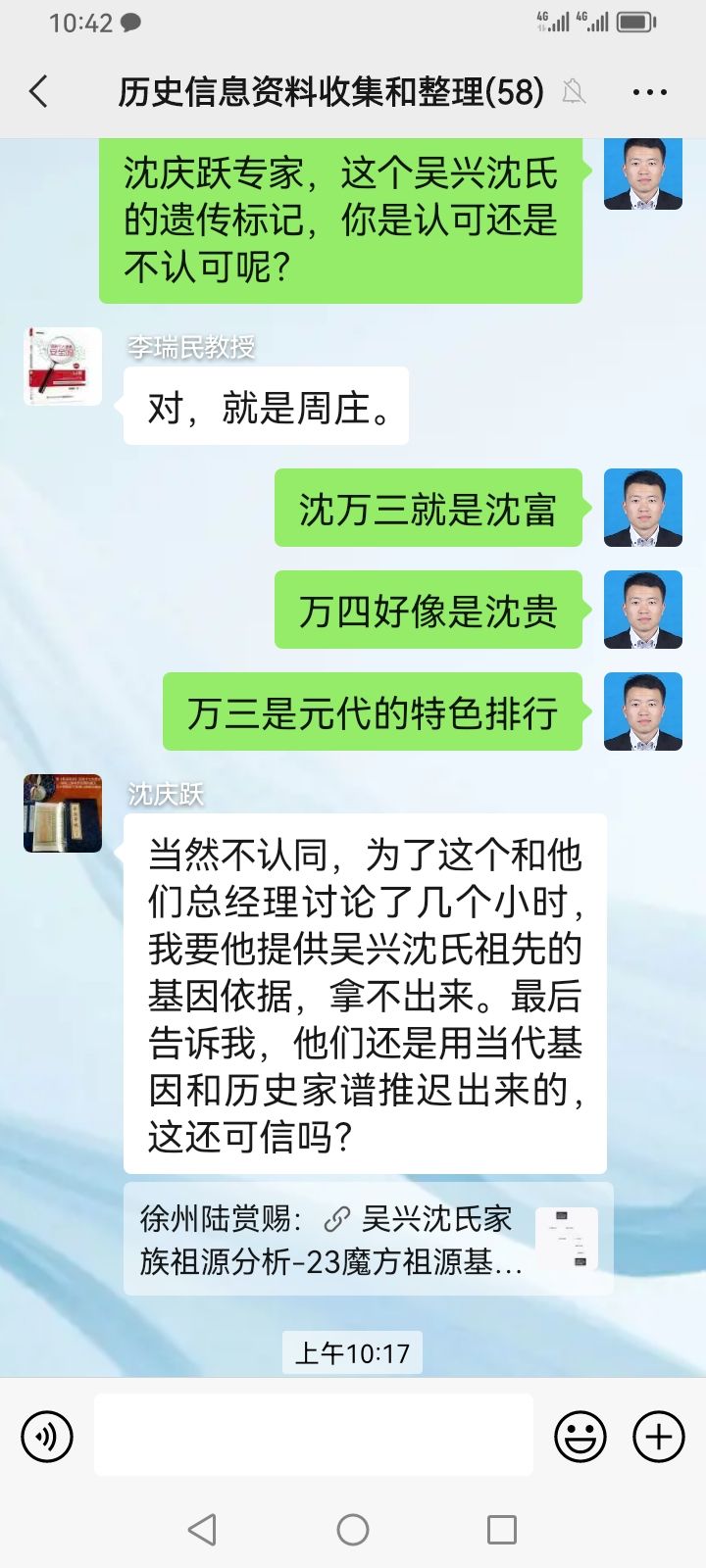 你直接问他,他这句话的意思其实是这些沈氏不是吴兴沈氏的后裔,你直接让他组织他认为是吴兴沈氏后裔来检测不就行了。
