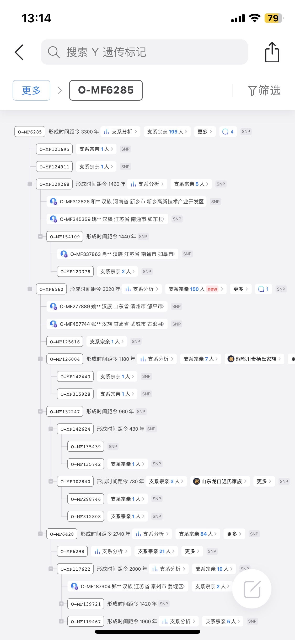 FGC66104下游的mf6285,共祖3300年前的商朝时期,3300-2700年之间大爆发,而徐国衰弱时期为徐偃王被周穆王杀,徐国弱,符合徐国历史。高频在西北和江苏北部,徐氏高频,怀疑是群舒或徐王,徐王可能性很大,而且好像没有位点,上游cts52挂了蛮多人。