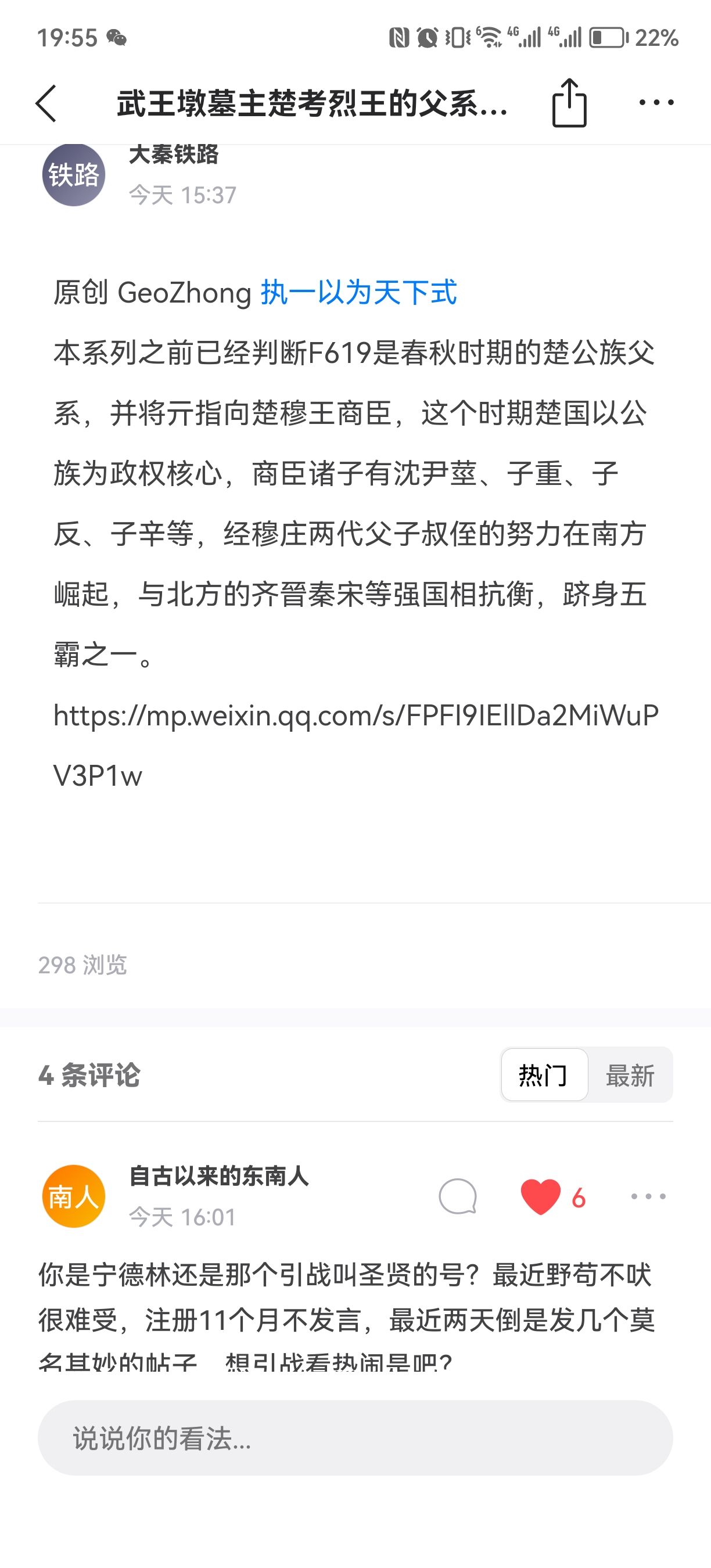 现在任何民族一律平等,但中国传统有百越俚獠之说,有点看不起南边的意思,张先老师废寝忘食,半夜不睡觉,起来发贴,就是要论证01是楚王族,当年是非常厉害的,要为01翻身