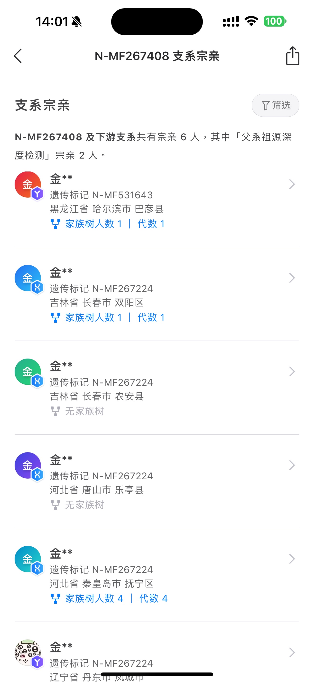 但实际上N-MF267408下面只有2个人在河北(1个人在乐亭),而其他成员集中在东北。