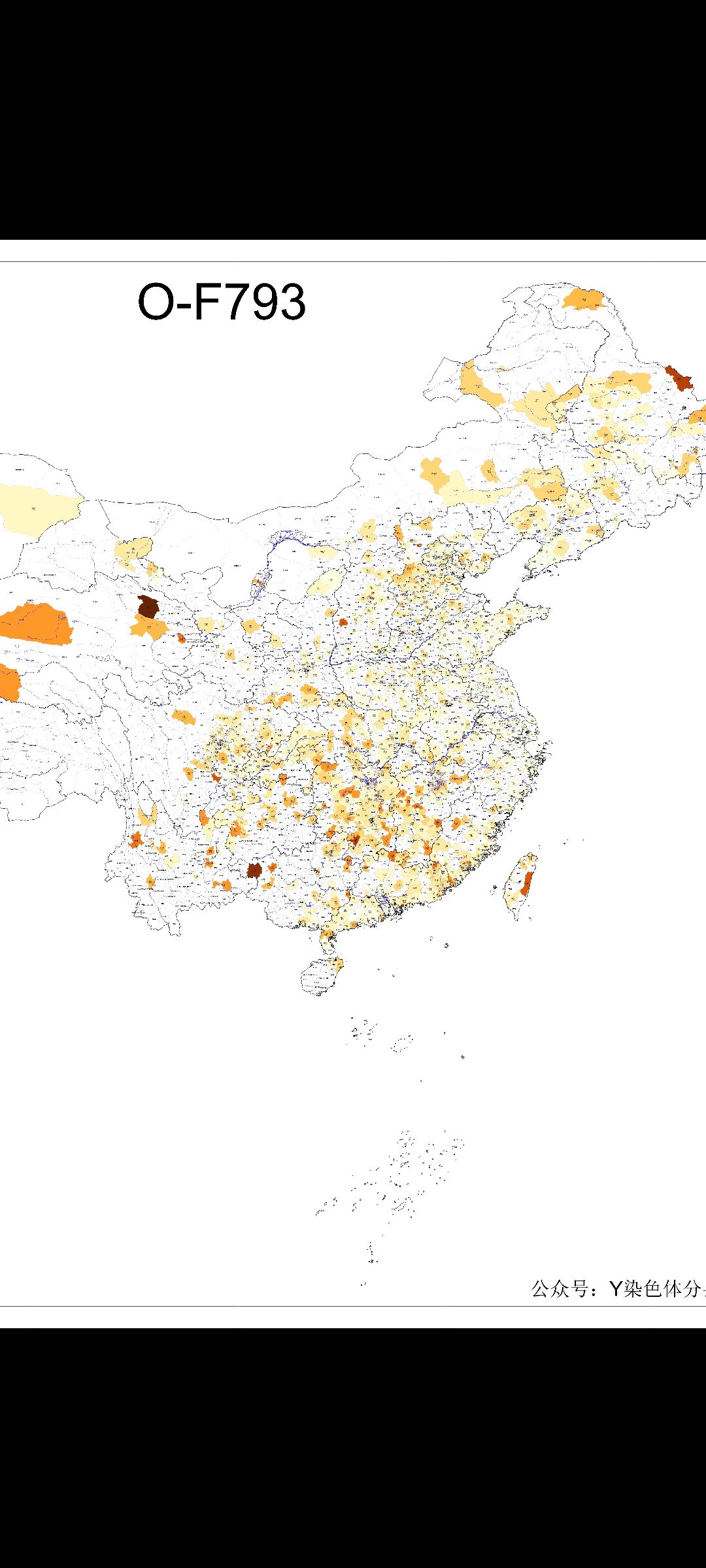 先给出两个遗传标记的分布,我发现19707分布比较契合西汉的地图——可以看到在云南最西边793有分布而19707没有,贵州北部793有分布而19707没有(我们知道这个时候贵州有个夜郎国,夜郎自大成语就是来自这里)想知道可能是什么原因导致的,是否和楚王有关系