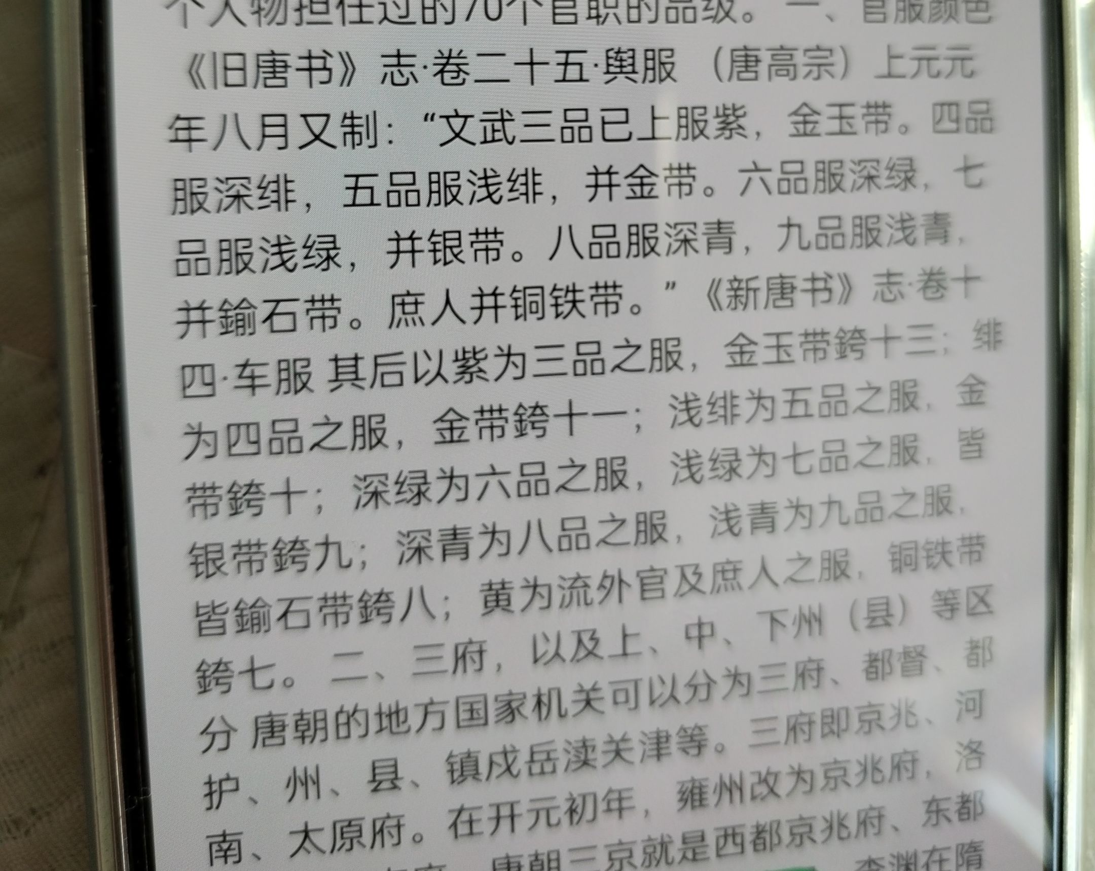龙朔二年(龙朔二年(662年)是唐高宗李治在位期间的一个年份),司礼少常伯孙茂道奏称:“旧令六品、七品着绿,八品、九品着青, 深青乱紫,非卑品所服。望请改八品、九品着碧。朝参之处,听兼服黄。”从之。 总章元年,始一切不许着黄。上元元年八月又制:“一品已下带手巾、算袋,仍佩 刀子、砺石,武官欲带者听之。文武三品已上服紫,金玉带。四品服深绯,五品服 浅绯,并金带。六品服深绿,七品服浅绿,并银带。八品服深青,九品服浅青,并 鍮石带。庶人并铜铁带。”文明元年七月甲寅诏:“旗帜皆从金色,饰之以紫,画 以杂文。八品已下旧服者,并改以碧。京文官五品已上,六品已下,七品清官,每 日入朝,常服袴褶。诸州县长官在公衙,亦准此。”景云中又制,令依上元故事, 一品已下带手巾、算袋,其刀子、砺石等许不佩。武官五品已上佩韘七事。七谓佩 刀、刀子、砺石、契苾真、哕厥针筒、火石袋等也。至开元初复罢之。则天天授二 年二月,朝集使刺史赐绣袍,各于背上绣成八字铭。长寿三年四月,敕赐岳牧金字 银字铭袍。延载元年五月,则天内出绯紫单罗铭襟背衫,赐文武三品已上。左右监 门卫将军等饰以对师子,左右卫饰以麒麟,左右武威卫饰以对虎,左右豹韬卫饰以 豹,左右鹰扬卫饰以鹰,左右玉钤卫饰以对鹘,左右金吾卫饰以对豸,诸王饰以盘 龙及鹿,宰相饰以凤池,尚书饰以对雁。