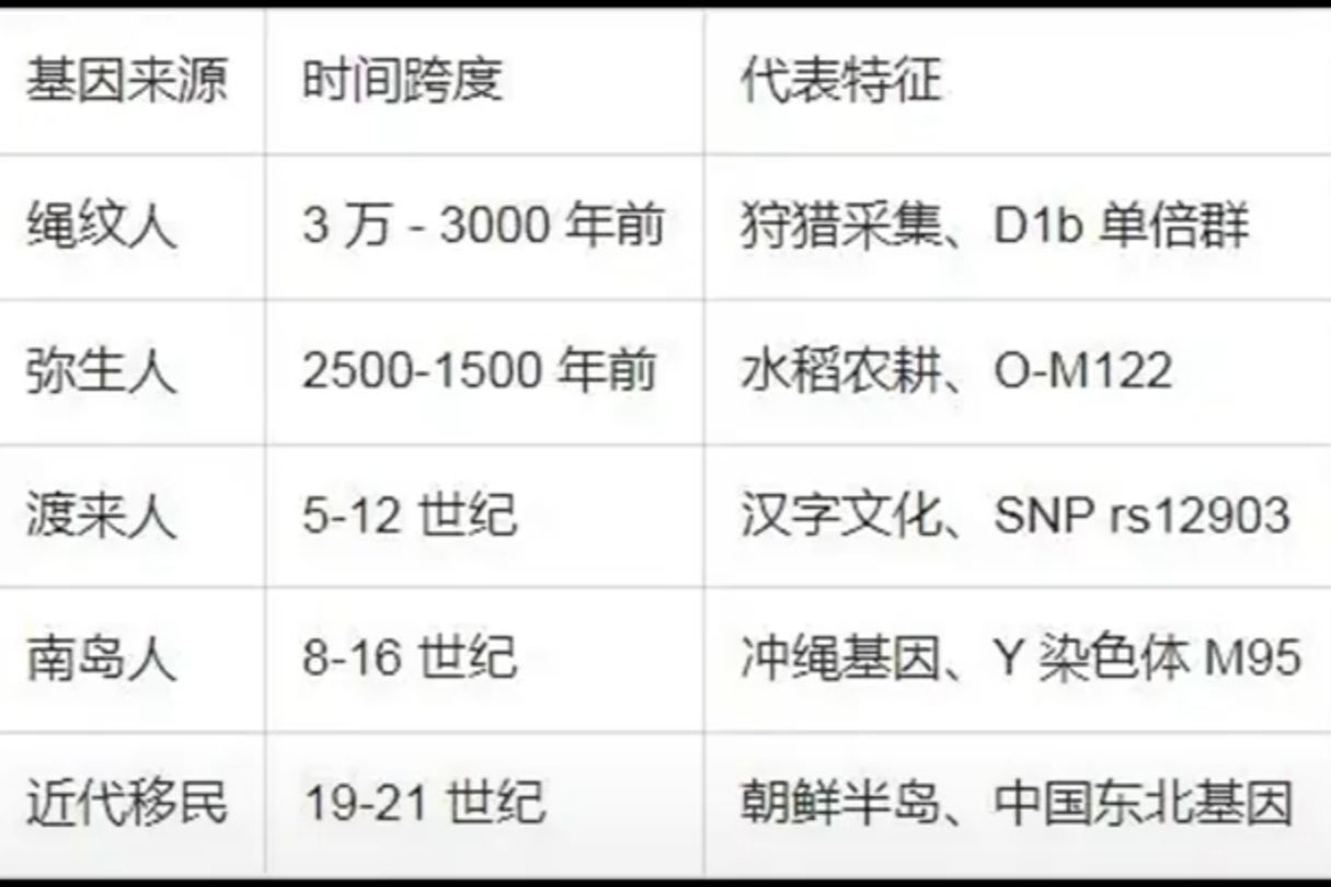 公元前300年开始,来自大陆的新移民——弥生人逐渐占据主导地位。弥生人主要被追溯至我国东北地区。弥生人从大陆迁移到日本,这些移民带来了先进的陶器制作技术,凭借先进的陶器技术和农耕文明,并迅速取代了绳纹人。弥生人带来水稻种植技术,其基因更接近东北亚大陆人群。公元前3世纪至公元3世纪,东亚大陆移民(弥生人)通过朝鲜半岛进入日本九州,带来水稻种植、冶铁技术及环濠聚落模式。基因检测显示,公元前300年左右出现的弥生人则携带东亚大陆基因,其Y染色体单倍群O-M122占比高达63%。弥生人携带的东亚大陆基因标记(如O-M122)在日本列岛形成明显的“基因梯度”,从九州向本州扩散,与中国东北、朝鲜半岛人群高度重叠。弥生人凭借其农业技术和军事力量,将绳纹人视为“蛮夷”,进一步推动了日本社会向农耕文明的迈进。弥生人带来了水稻种植技术和青铜器、铁器的使用方法,大幅提高了生产力。研究表明,弥生人可能最早出现在公元前300年左右,并在短时间内成为日本的主要居民。弥生文化的兴起标志着日本进入农业社会,人口迅速增长。传统理论认为日本民族由本土绳文人(约1.6万年前至公元前300年)与渡海而来的弥生人(公元前300年-公元300年)混血形成。但最新的2019年金泽大学团队通过古坟时代人骨DNA分析研究发现,现代日本人的基因构成中,绳文成分仅占约10-20%,弥生成分占30-40%,主体基因(约50%)源自古坟时代后的东亚大陆移民,表明东北亚移民的影响远超早期认知。