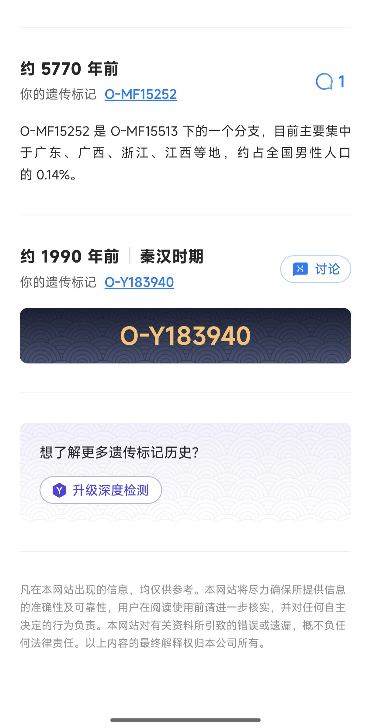 测出来我的父系y是O-Y183940,23魔方也没关联任何名人(我测的499不是899深度溯源)