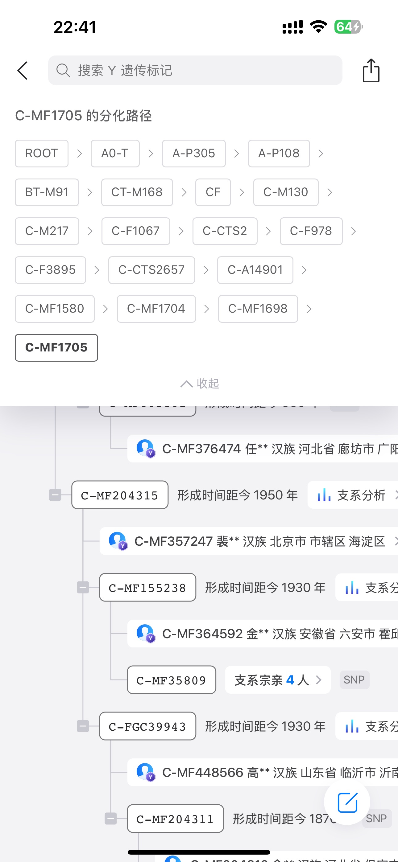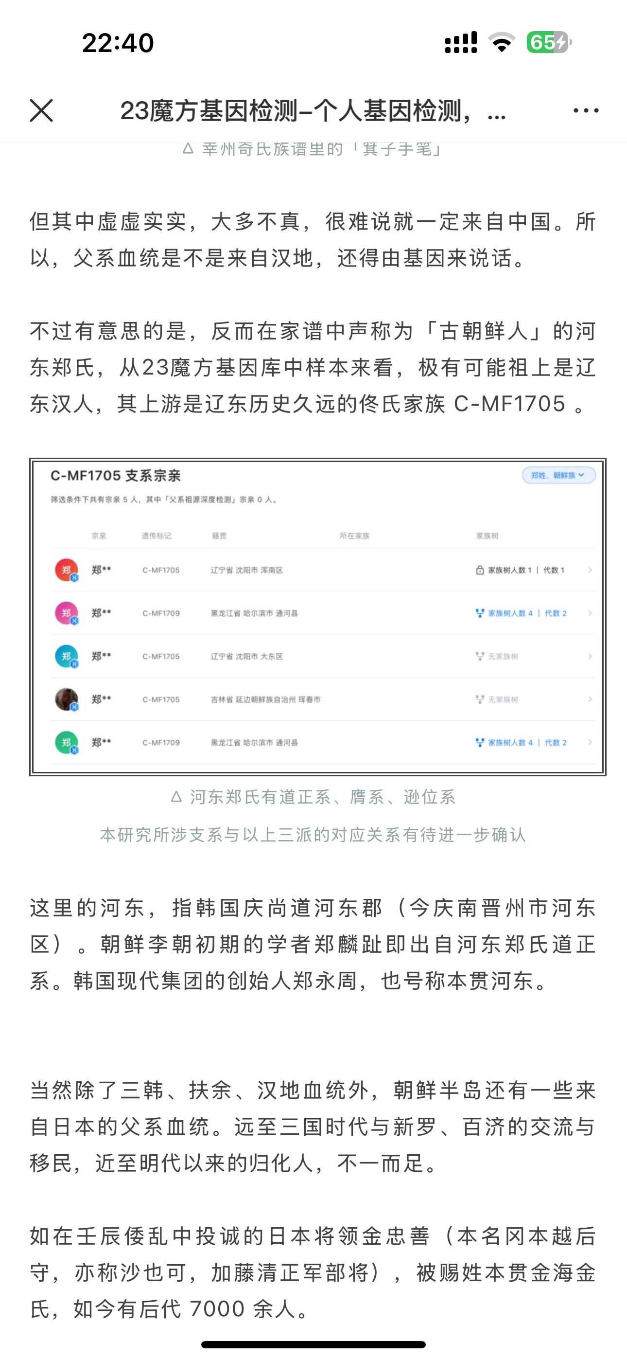 c南作为高句丽统治者父系的概率越来越低。c南下游唯一一支和朝满高频的父系是F20457下游的86025。这一支上游是红山文化人群,还是典型的汉族人群。cts2657另一支朝鲜族高频的MF1705也是辽东汉族父系。高句丽建国七百多年,高句丽百济统治者都是扶余人。唐灭高句丽百济后迁徙了部分高句丽人于江淮陇右,是人口2.8万户于十万人左右,其余人口则是主要融入到了渤海国和新罗中。作为统治者父系毕竟有和朝鲜族高频同源的特点,一个存在七百多年得父系不可能全部迁徙到了中国,肯定还会有大量的破落贵族平民化的贵族。而c南cts2657作为高句丽父系与半岛族群满族高频的契合度实在太低,其高句丽王族姓氏的契合度也太低。并没有高 何等高句丽王族姓氏分布。作为23魔方之前也分析过,CTS2657下游的Mf1705属于半岛的汉地来客,其已经跟明朗了。