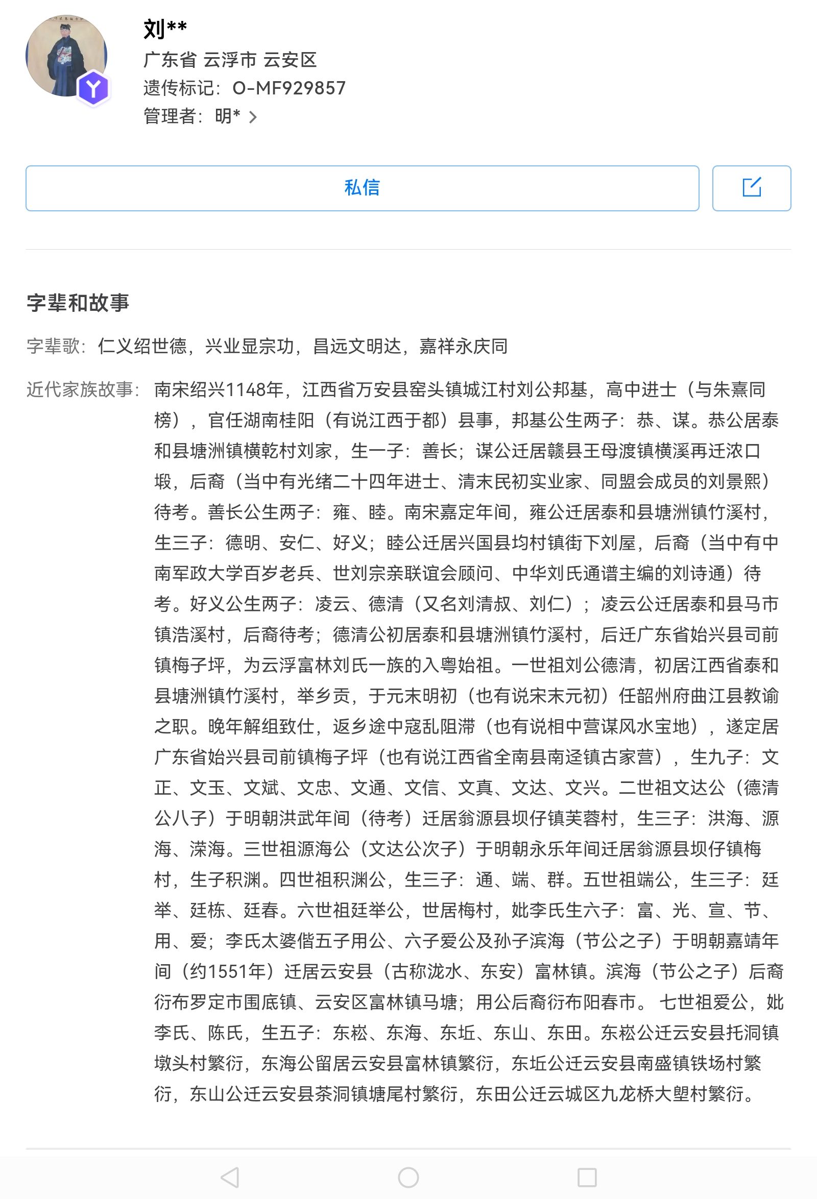 举报该帖子 广东刘氏德清公家族09-22· 190 浏览1 评论 明亮 关联 1 个家族广东刘氏家族一支 1 条评论 热门最新 明亮 09-22族谱是这样记载的,具体真实性暂时无从考究。希望联系相关宗亲,深入探索研究,正本清源,梳理明确先祖情况。添加评论点赞 举报该评论 举报该评论 举报类型 违法违规 色情低俗 时政不实信息 引导站外加群 冒充他人 谩骂攻击 网络暴力 其他 无数据 举报描述 举报截图 提交取消评论 图片关联家族你保存和创建的家族 完成关联单倍群 完成提交评论