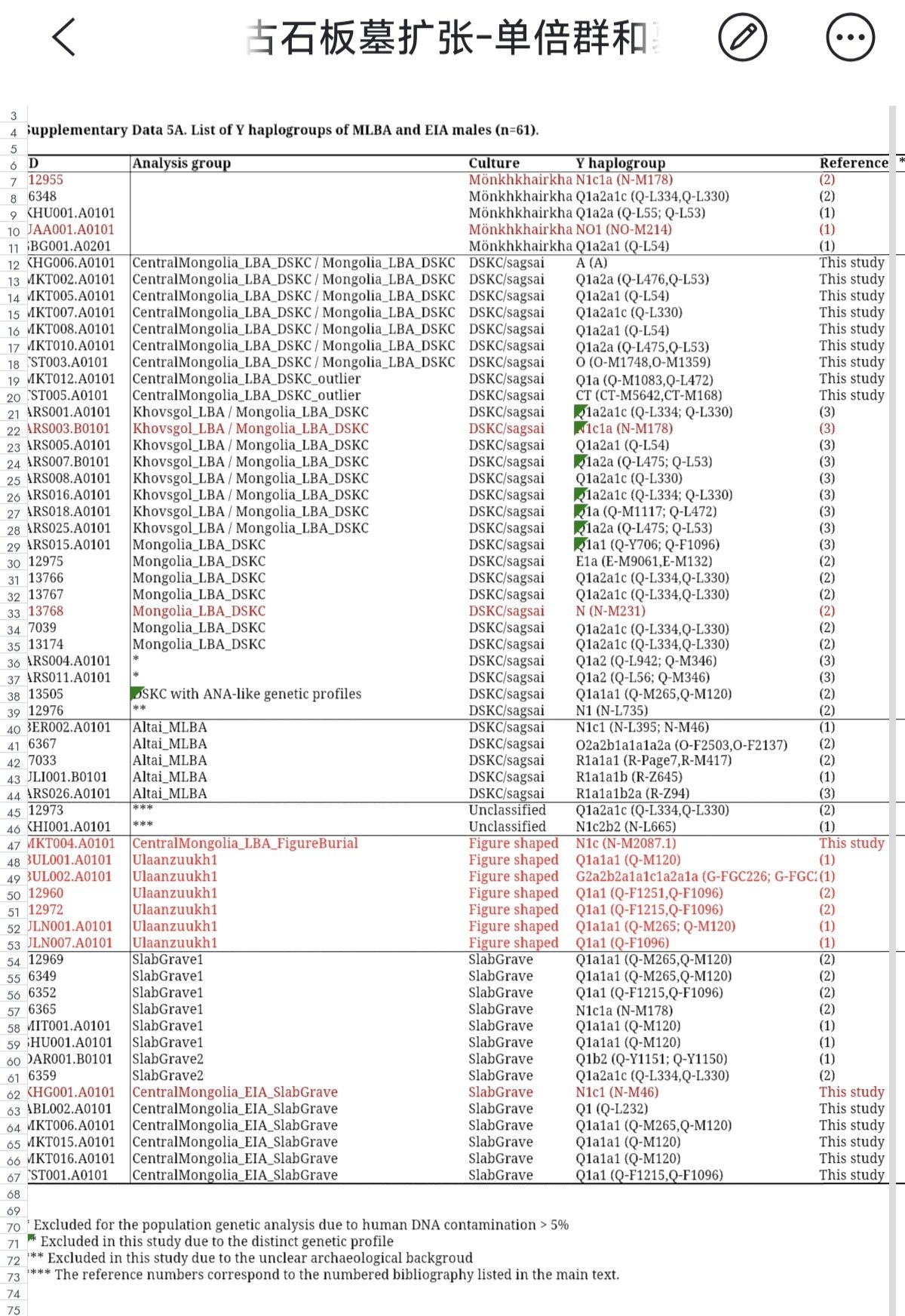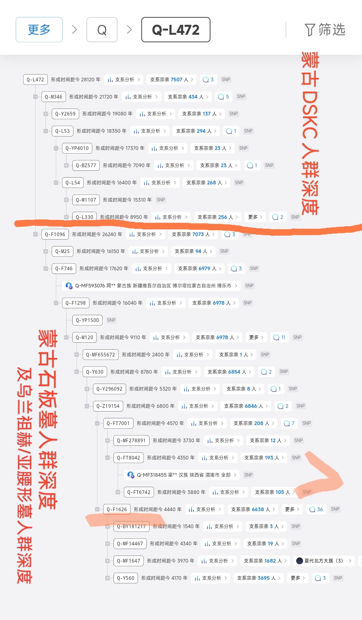 论文归类中,Q1b1-L53主要存在于DSKC文化人群(Deer Stones and Khirigsuurs Culture,BC1400-800)和门赫海尔汗文化(Munkh-Khairkhan Culture,BC1800-1400)。
