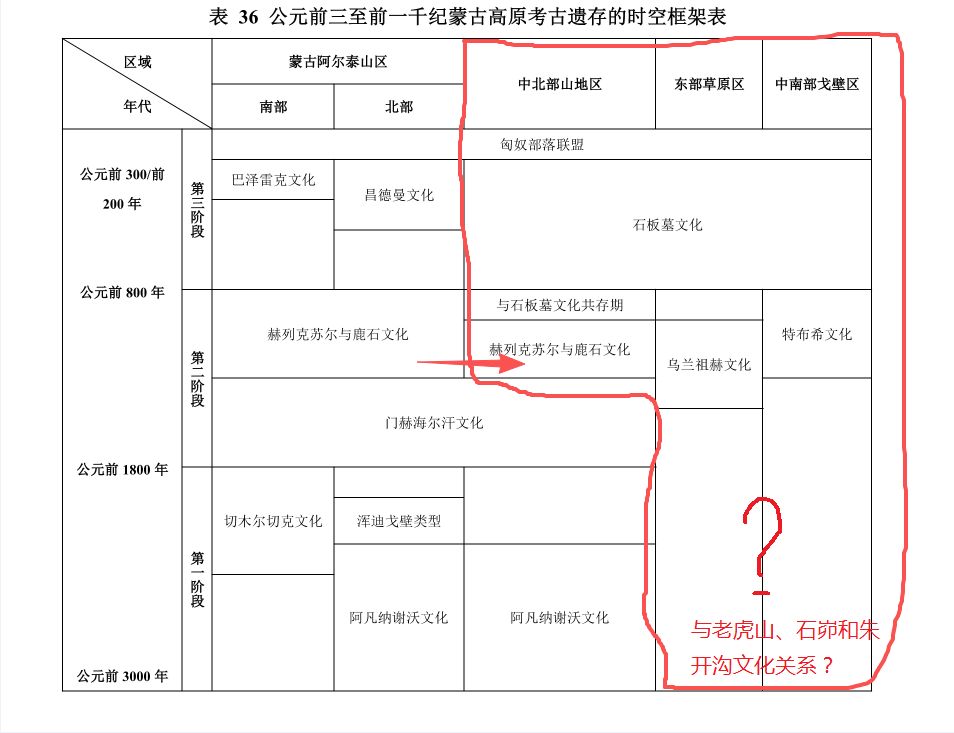 王尹辰硕士论文《公元前三至前一千纪蒙古高原考古学文化格局的演进摘要》(2021)曾对这几类文化做了完整的时空框架梳理。附录如下。
