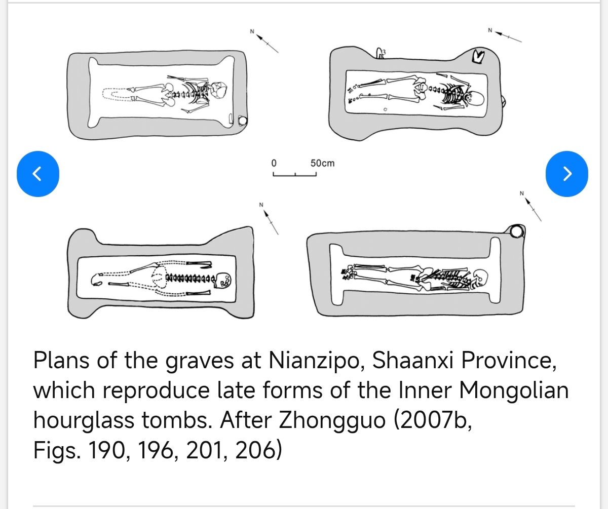 唯N1a2-CTS8410较为模糊,其测年时间也未确切,论文定位于3059±44bp,下引论文则指出,其测年校正结果在BC1737-1526,难以归入到特布希文化(Ulaanzuukh-Tevsh culture)。其检测深度停留于姬周族群上游,但考虑甘肃马鬃山亦检出一例稍早时期的样本。或可推测,这与“不窋失官自窜于戎狄”传说有关。此2例或为其早期分支,或为不窋自窜之後分支。另一研究指出,亚腰形墓广泛分布于乌兰祖赫-特布希文化群,并进入了内蒙阴山地区、乃至咸阳碾子坡。
