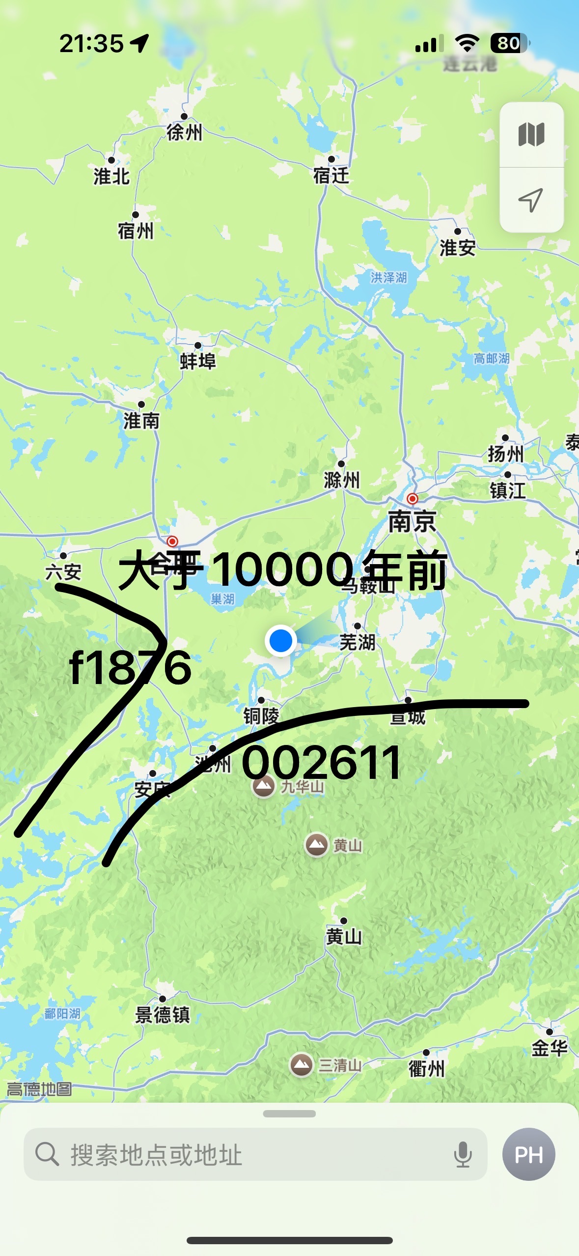 综上,L127.1可能起源于赣北皖西南一带的鄱阳湖周边(如庐山地区等),在约1万多年前被古鄱阳湖、长江和沿江山脉分割出f1876和002611,持续迁移下,f1876止步于大别山东麓,在巢湖以西和大别山东麓之间的区域进行采猎。而002611在更贴近长江走向的古鄱阳湖东侧,沿着长江逐步迁徙到皖江中下游地区,在该区域过着狩猎麋鹿和采集果实的生活。在8000年之后,一部分002611从巢湖东南的丘陵北迁至淮河中游,参与了淮河中游的新石器文化,甚至有一些支系向更北走去(例如伽马1),有有一部分002611支系停滞在巢湖东岸和南岸至长江沿岸的旷野。约7000年前,一部分淮河中游的002611支系开始南下,与停滞在巢湖流域的部分002611支系一同迁入太湖西北侧的宁镇地区,随着海侵退去,太湖成型,太湖西北侧的002611支系逐步迁入太湖东侧、南侧,深度参与马家浜文化-崧泽文化-良渚文化等一系列环太湖新石器文化。