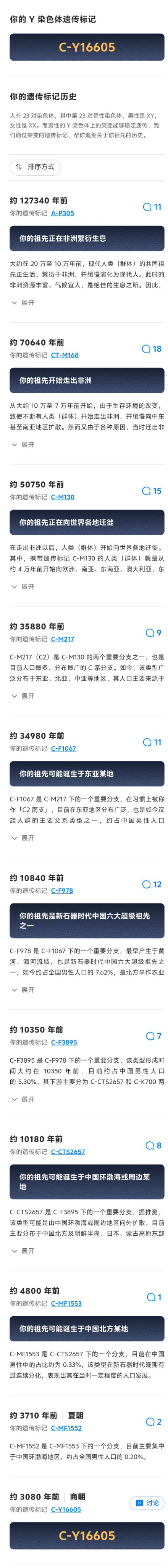 举报该帖子 求解C-Y16605是怎么发展过来的,只能确定上游是C南枝,不知道是怎么发展过来的11-02· 1105 浏览8 评论白 白 8 条评论 热门最新 多啦梦象 11-08环渤海人 跑到河南 莫非是在大汶口文化击溃中原后跟着来的? 5000-4000年前就来到中原的添加评论3 赞 举报该评论 举报该评论 举报类型 违法违规 色情低俗 时政不实信息 引导站外加群 冒充他人 谩骂攻击 网络暴力 其他 无数据 举报描述 举报截图 提交取消评论 武烈裔震Y145096 11-04你应该是个河南土著,因为你同宗分为江南地区、山东、陕西、江西,基本上是你同宗都在四处为官,也只有河南能满足南下、东进、西迁的情况1 评论1 赞 举报该评论 举报该评论 举报类型 违法违规 色情低俗 时政不实信息 引导站外加群 冒充他人 谩骂攻击 网络暴力 其他 无数据 举报描述 举报截图 提交白 白 11-04谢谢您,我的确是河南人,当地同宗数以万计,族谱最早记录的祖先是元朝时期来到河南的,至于他从何而来尚不明确,只是他攀附白居易应该是假的,再往上就是白起,白公胜,白阜这些过于遥远。不清楚从三千年前形成这一支系开始到现在不清楚是怎么发展到现在的。点赞 举报该评论 举报该评论 举报类型 违法违规 色情低俗 时政不实信息 引导站外加群 冒充他人 谩骂攻击 网络暴力 其他 无数据 举报描述 举报截图 提交取消评论取消评论 大龙 11-02新石器时代六大超级祖先之一添加评论1 赞 举报该评论 举报该评论 举报类型 违法违规 色情低俗 时政不实信息 引导站外加群 冒充他人 谩骂攻击 网络暴力 其他 无数据 举报描述 举报截图 提交取消评论 China——C 11-25中华六大始祖之一C系共祖添加评论点赞 举报该评论 举报该评论 举报类型 违法违规 色情低俗 时政不实信息 引导站外加群 冒充他人 谩骂攻击 网络暴力 其他 无数据 举报描述 举报截图 提交取消评论 CTS3385 11-04有c系微信群和qq群 里面讨论挺热闹的添加评论点赞 举报该评论 举报该评论 举报类型 违法违规 色情低俗 时政不实信息 引导站外加群 冒充他人 谩骂攻击 网络暴力 其他 无数据 举报描述 举报截图 提交取消评论海臣 黄海臣 11-04这什么民族1 评论点赞 举报该评论 举报该评论 举报类型 违法违规 色情低俗 时政不实信息 引导站外加群 冒充他人 谩骂攻击 网络暴力 其他 无数据 举报描述 举报截图 提交白 白 11-04汉族,查资料发现c南支就好华夏原始股,汉族父系之一。1 赞 举报该评论 举报该评论 举报类型 违法违规 色情低俗 时政不实信息 引导站外加群 冒充他人 谩骂攻击 网络暴力 其他 无数据 举报描述 举报截图 提交取消评论取消评论 图片关联家族你保存和创建的家族 完成关联单倍群 完成提交评论