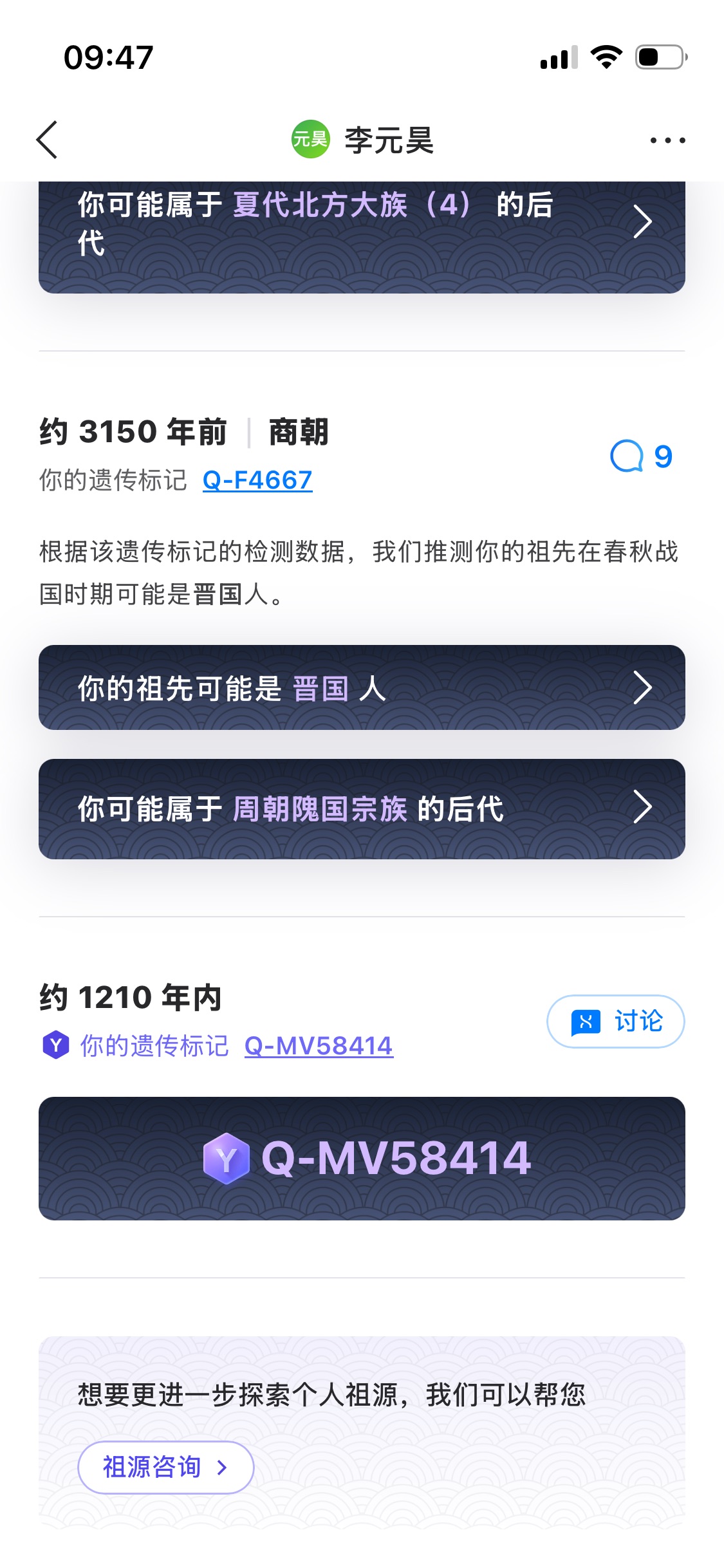 蓝N-F1998山西 11-27山西内蒙兰氏是这个基因,后裔不少。1 评论点赞 举报该评论 举报该评论 举报类型 违法违规 色情低俗 时政不实信息 引导站外加群 冒充他人 谩骂攻击 网络暴力 其他 无数据 举报描述 举报截图 提交 Wesley 11-27嗯嗯,家里西安的,估计山西附近迁过去的点赞 举报该评论 举报该评论 举报类型 违法违规 色情低俗 时政不实信息 引导站外加群 冒充他人 谩骂攻击 网络暴力 其他 无数据 举报描述 举报截图 提交取消评论取消评论