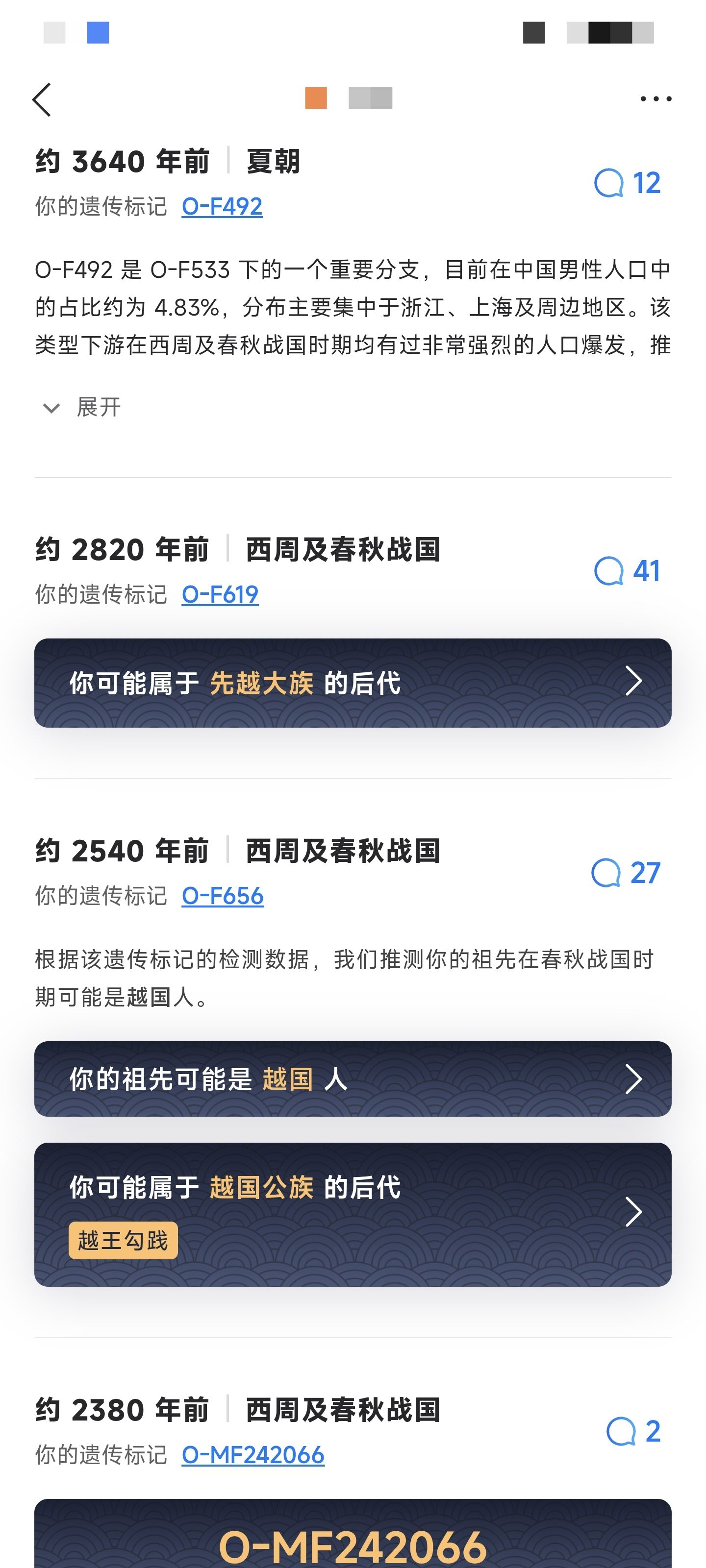 尧舜 尧舜 11-266 评论点赞 举报该评论 举报该评论 举报类型 违法违规 色情低俗 时政不实信息 引导站外加群 冒充他人 谩骂攻击 网络暴力 其他 无数据 举报描述 举报截图 提交 O-F656-O-MF407480 11-27也就是23魔方提供的656基因后代是错误的?点赞 举报该评论 举报该评论 举报类型 违法违规 色情低俗 时政不实信息 引导站外加群 冒充他人 谩骂攻击 网络暴力 其他 无数据 举报描述 举报截图 提交取消评论 O-F656-O-MF407480 11-27O-656更偏向楚国公族后裔?不是越国了么?求答疑点赞 举报该评论 举报该评论 举报类型 违法违规 色情低俗 时政不实信息 引导站外加群 冒充他人 谩骂攻击 网络暴力 其他 无数据 举报描述 举报截图 提交取消评论取消评论