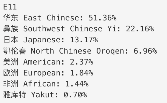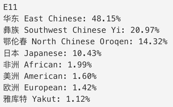 通过参考这五个最早的O-F325样本,我们可以总结出一些规律。在长江流域的O-F325样本没有任何代表北部的鄂伦春和代表西部的彝族。 除了少数例外之外,在山东的O-F325样本没有代表南部的傣成分。可是这些O-F325样本都有接近一半的华东成分以及百分之十左右的日本成分。虽然古样本覆盖率不高而且用现代人的基因计算器衡量古人有一定的困难,这些数据在新的古基因被研究前是有重要的引导作用的。