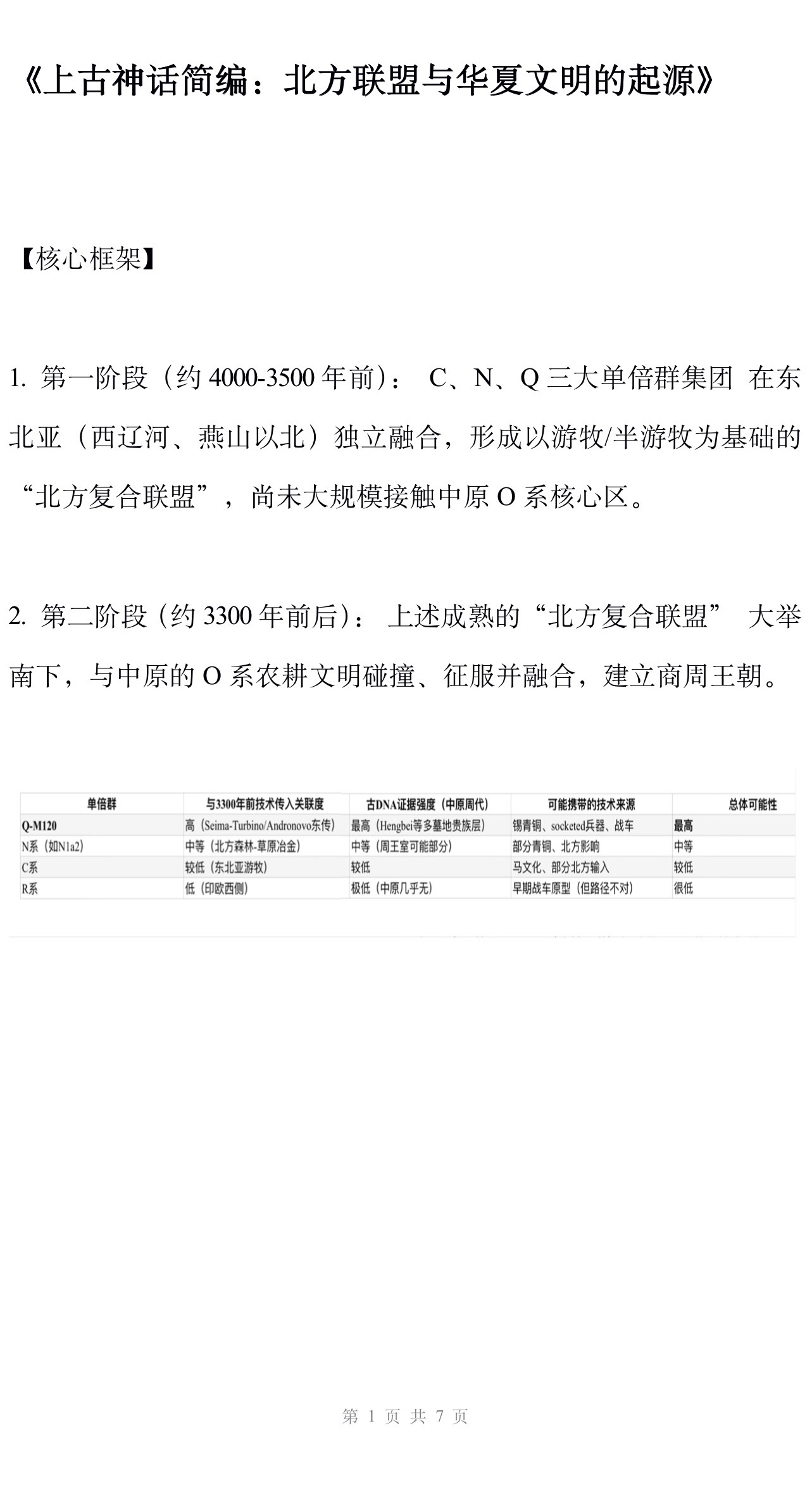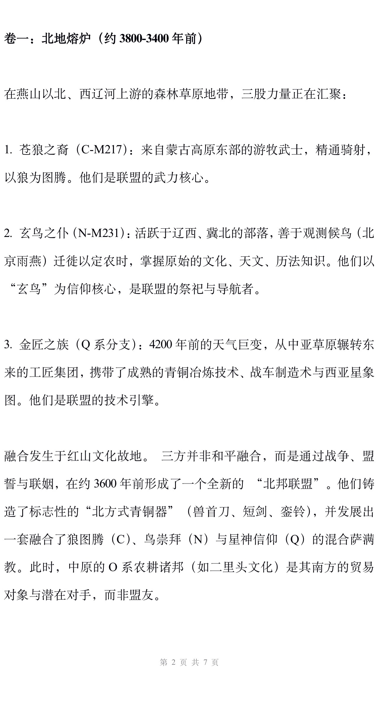 1. 第一阶段(约4000-3500年前): C、N、Q三大单倍群集团 在东北亚(西辽河、燕山以北)独立融合,形成以游牧/半游牧为基础的“北方复合联盟”,尚未大规模接触中原O系核心区
