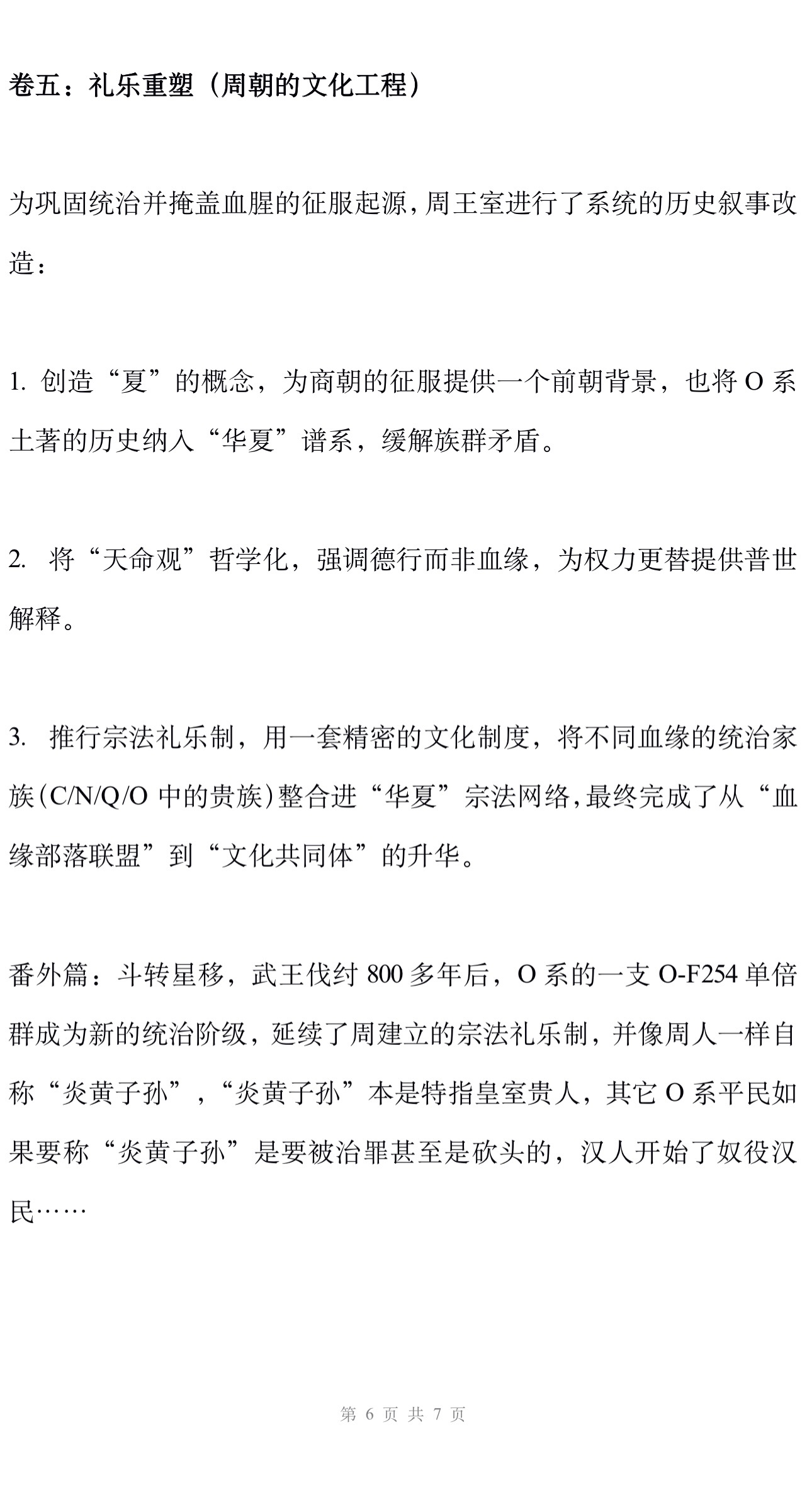 番外篇:斗转星移,武王伐纣800多年后,O系的一支O-F254单倍群成新的统治阶级,延续了周建立的宗法礼乐制,并像周人一样自称“炎黄子孙”,“炎黄子孙”本是特指皇室贵人,其它O 系平民如果要称“炎黄子孙”是要被治罪甚至是砍头的,汉人开始了统治汉民……