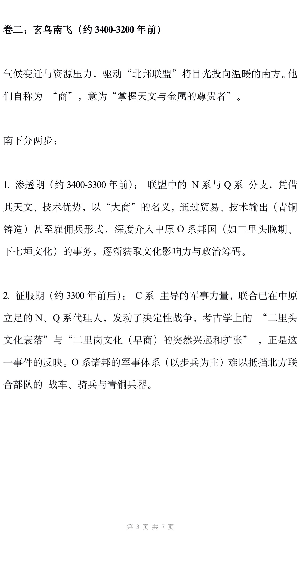 2. 第二阶段(约3300年前后): 上述成熟的“北方复合联盟” 大举南下,与中原的O系农耕文明碰撞、征服并融合,建立商周王朝。