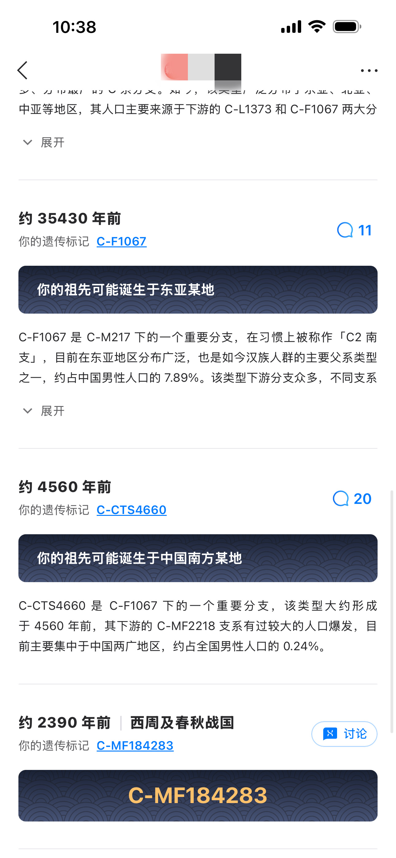 举报该帖子 今天刚查出的祖源结果,C2南支,祖上应该是南方人还混了点东北亚布里亚特,有点意外 01-13· 612 浏览4 评论 天行键 C南老广 4 条评论 热门最新翔天 飞龙#翔天 01-144660,南方老土著了添加评论点赞 举报该评论 举报该评论 举报类型 违法违规 色情低俗 时政不实信息 引导站外加群 冒充他人 谩骂攻击 网络暴力 其他 无数据 举报描述 举报截图 提交取消评论 刘 01-13非F978的C南添加评论点赞 举报该评论 举报该评论 举报类型 违法违规 色情低俗 时政不实信息 引导站外加群 冒充他人 谩骂攻击 网络暴力 其他 无数据 举报描述 举报截图 提交取消评论 细化支系不屑大字母J-ZS3540 01-13现如今中国,C支系早已不分南北,恭喜你。添加评论点赞 举报该评论 举报该评论 举报类型 违法违规 色情低俗 时政不实信息 引导站外加群 冒充他人 谩骂攻击 网络暴力 其他 无数据 举报描述 举报截图 提交取消评论 使徒 01-13老广东了 C2b2添加评论点赞 举报该评论 举报该评论 举报类型 违法违规 色情低俗 时政不实信息 引导站外加群 冒充他人 谩骂攻击 网络暴力 其他 无数据 举报描述 举报截图 提交取消评论 图片关联家族你保存和创建的家族 完成关联单倍群 完成提交评论
